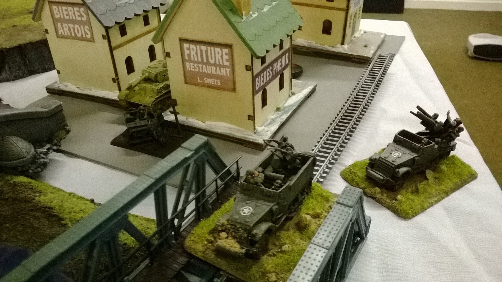 Similarly, the newly arrived AAA battery hosed down the MPs on the Cheneux road bridge. Behind the half-tracks came the mortar platoon of the 117th Infantry regiment, deploying to cover the withdrawal of CCA to the station.