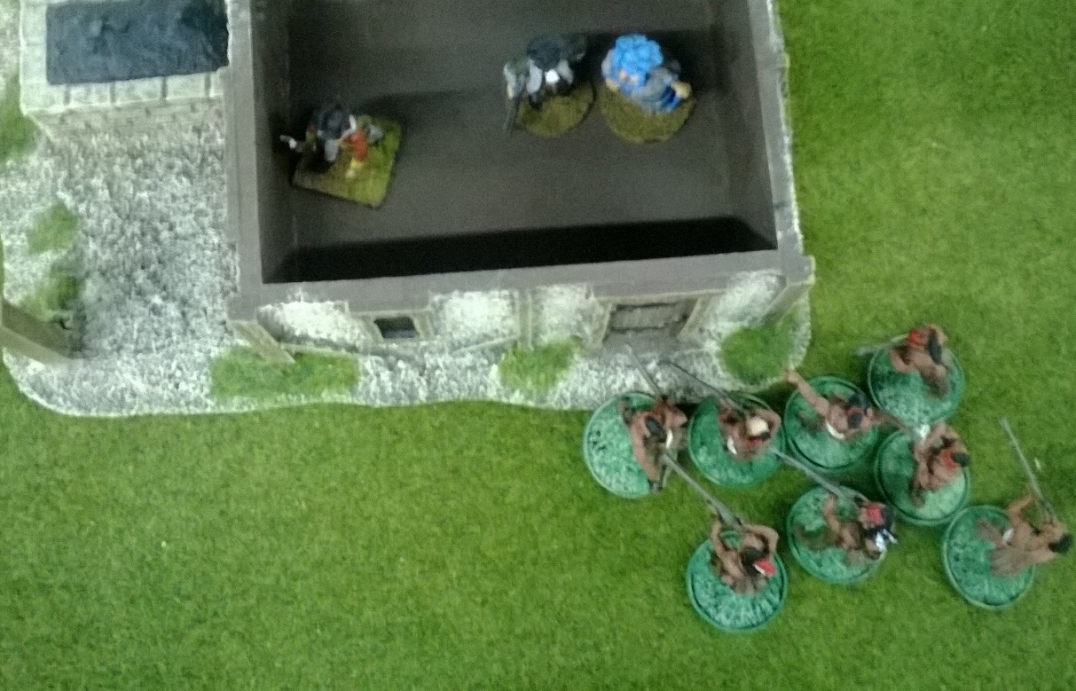 I outnumbered the beleaguered defenders five to one but couldn’t force the door! Graham’s troops failed their morale but the retreat took them into the centre of his supporting troops. Sorry to say that we had misread the melee rules and the fight should of continued in the house. Whether the Indians would have parlayed with the hostages or given them a scalping we will never know.