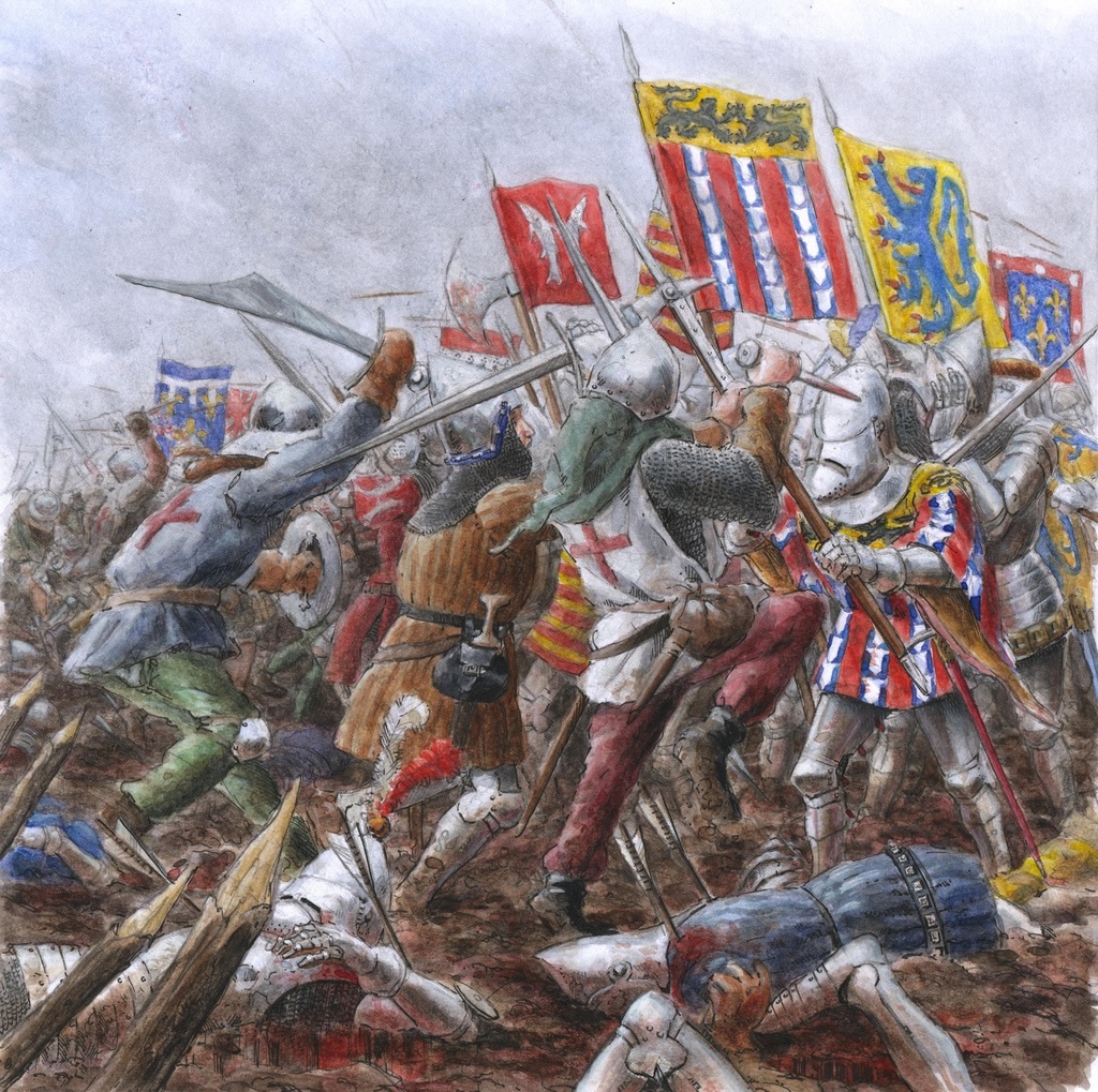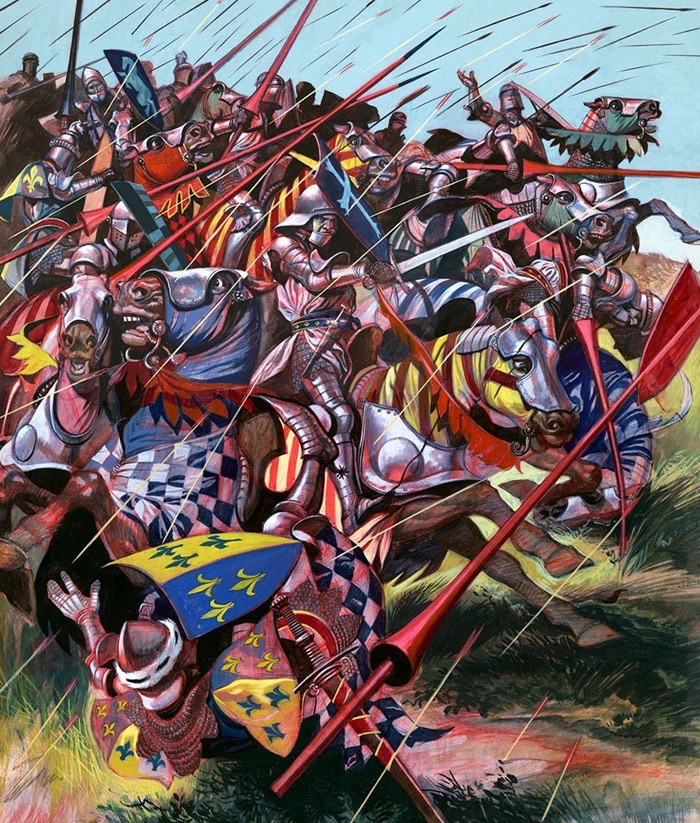 But, the yew bows were really to show their worth on the English right. The mediocre French crossbow were carelessly left on their hilltop. The elite yeomen of England set to work and in a few turns they were decimated. Phil followed up with a mounted charge and the French array crumbled.