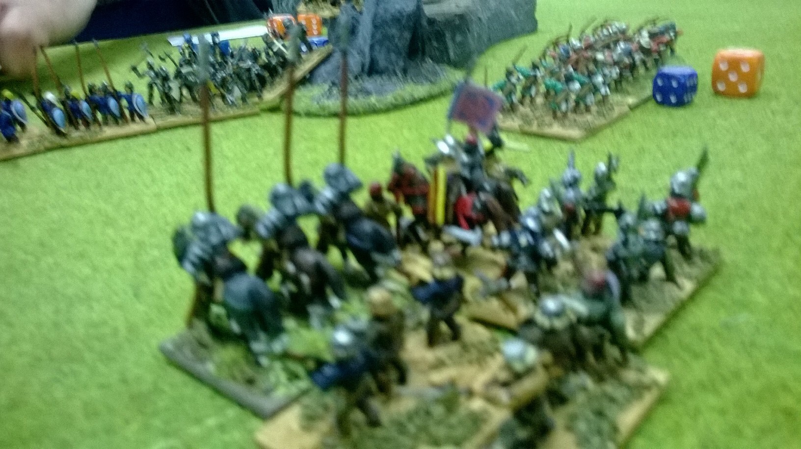 The scoundrels in question were of course the Genoese crossbowmen who were less than enthusiastic about getting to grips with the English at Crecy. The Hundred Years War has always been a favourite. The Agincourt campaign may grab all the attention but there are plenty of other less one -sided affairs, in the Iberian Penninsular and later in the conflict too. This Thursday’s chevauchee was led by the redoubtable Phil the Spaniard. Ken played the part of Phillip VI or was it blind John of Bohemia?