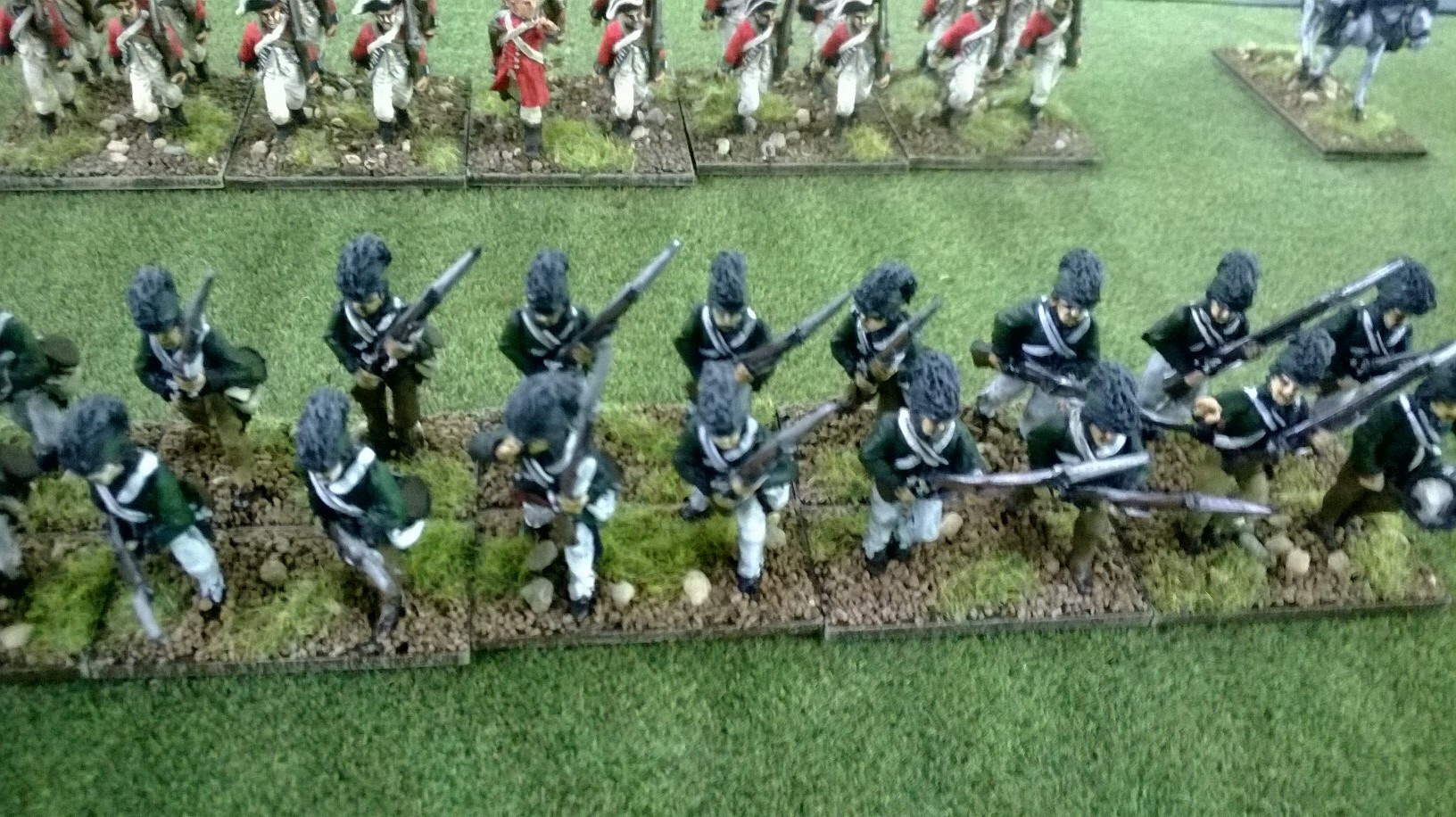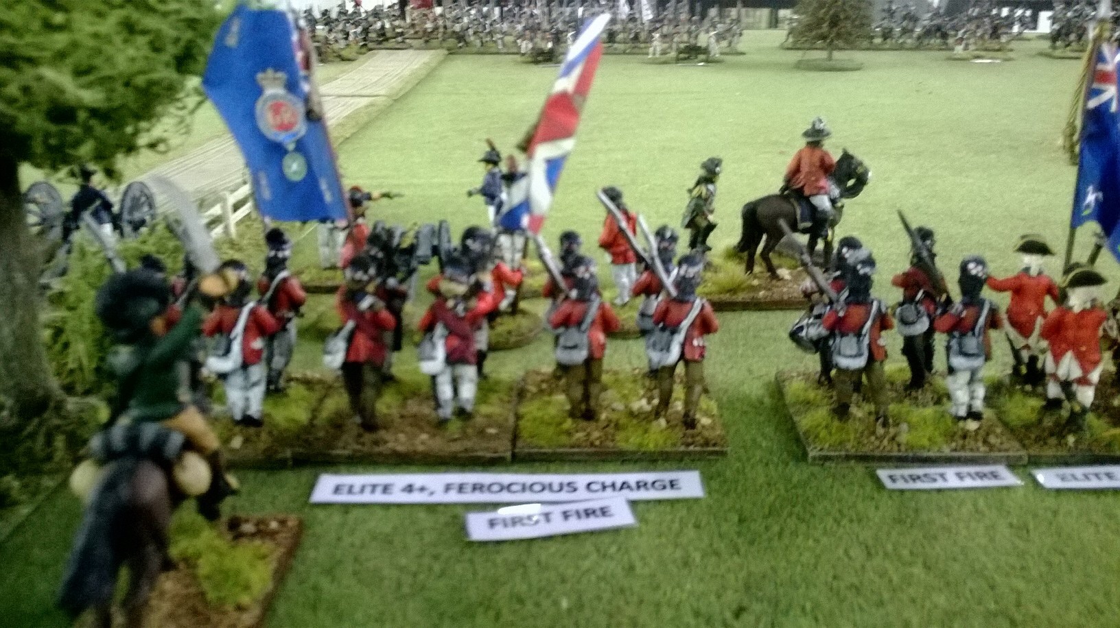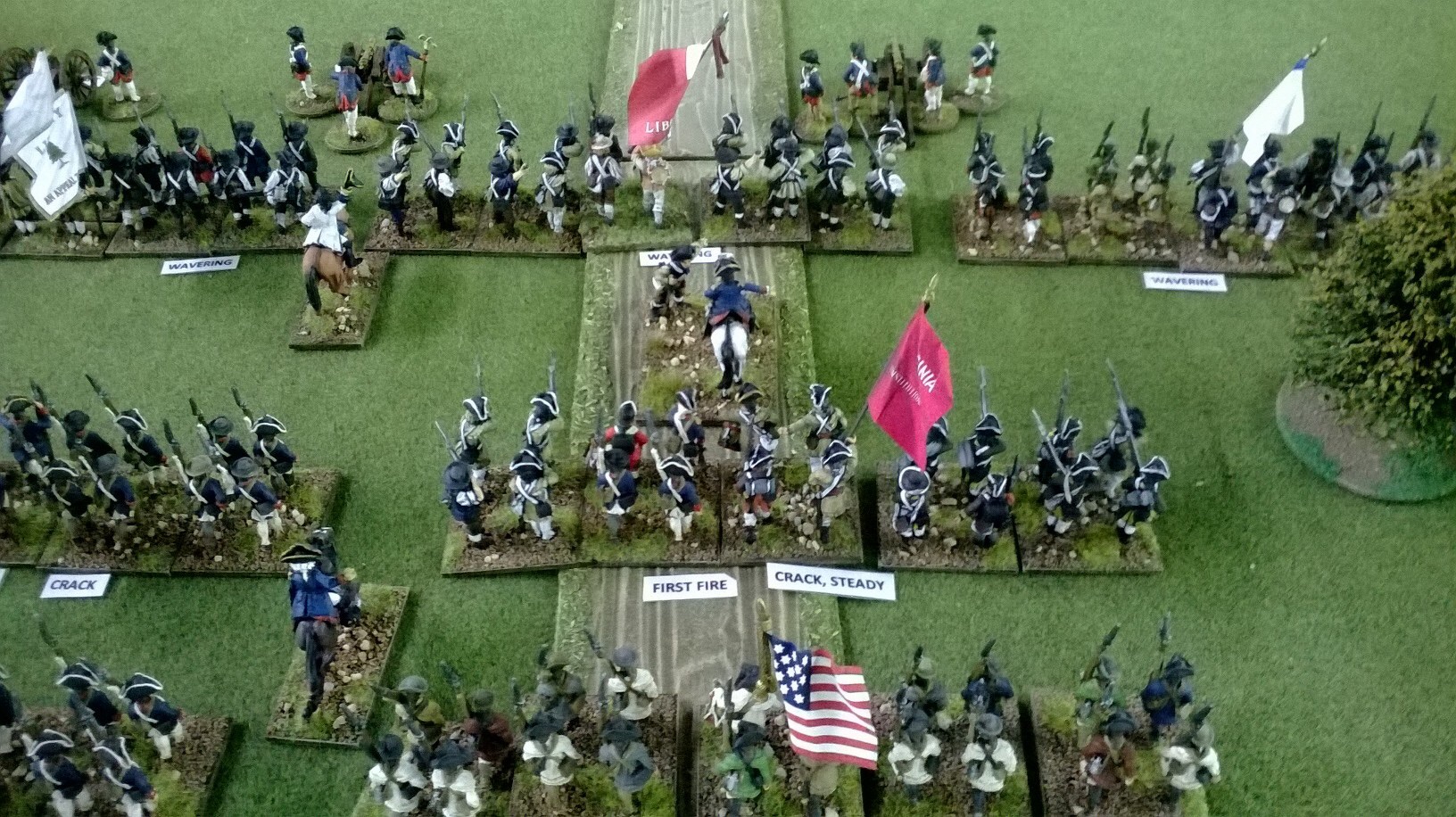 If Webster was being aggressive on the British right, the Loyalists on the Left weren’t far behind. The. British Legion and the Volunteers of Ireland poured fire into the Rebels at short range and it was still the first turn…..