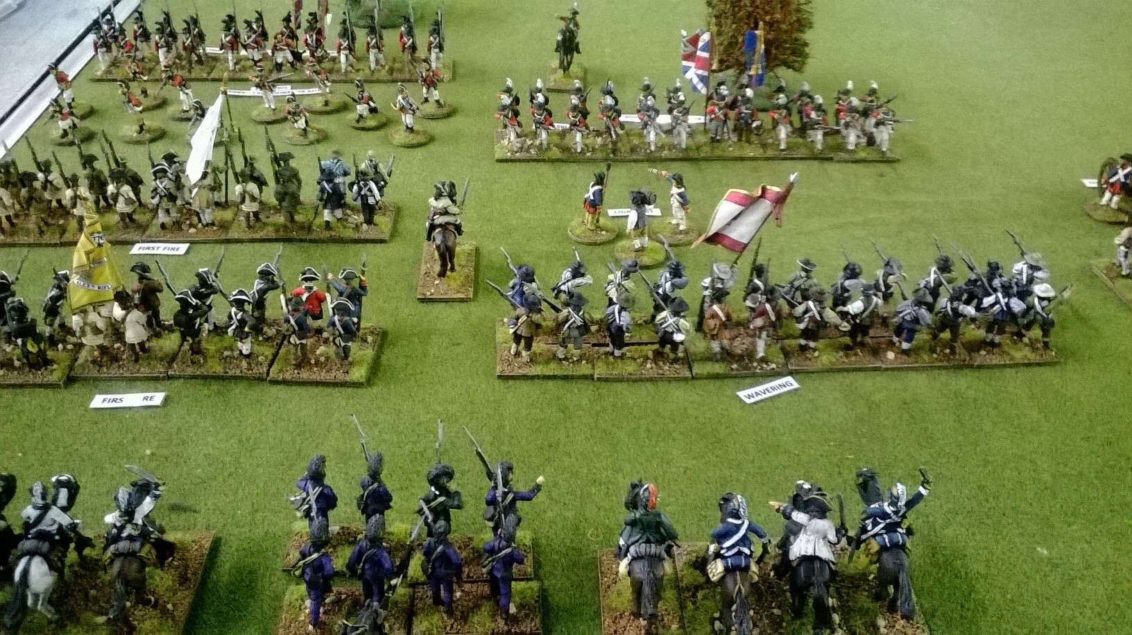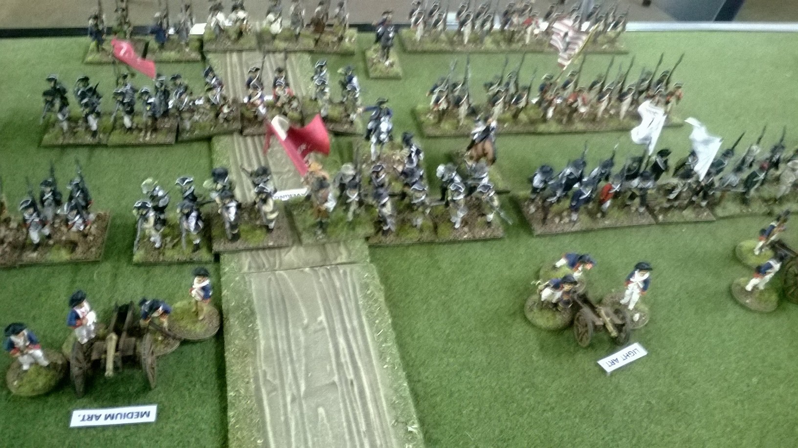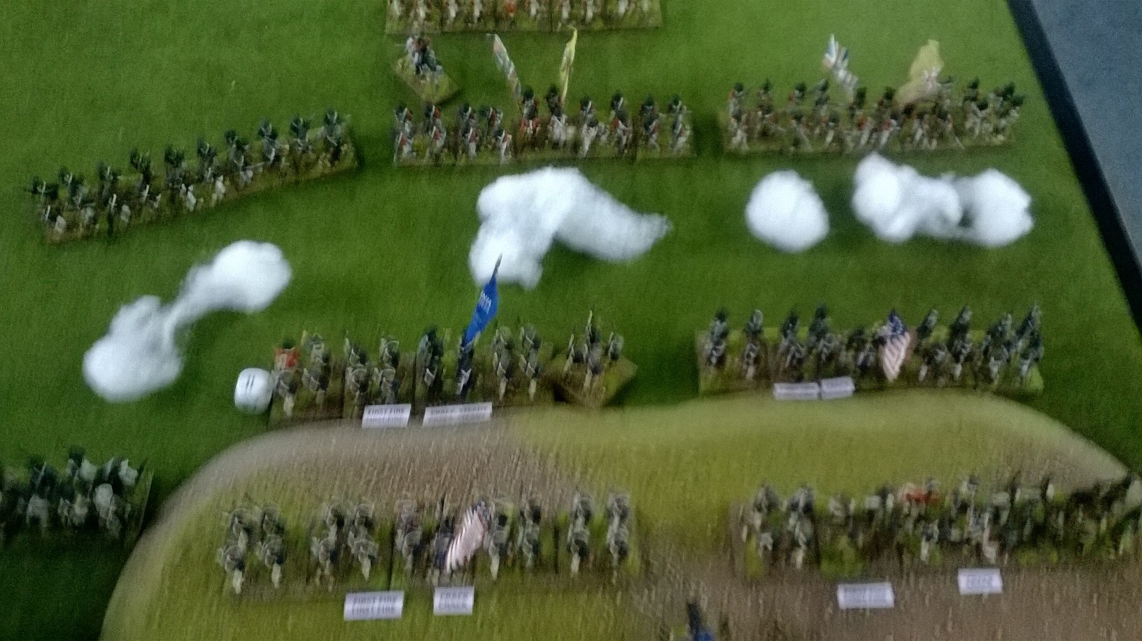 The restricted size of the field meant that the British right under Webster were peppering the American lines in turn one. Thankfully, although benefitting from “first fire” the numerous hits weren’t converted into casaulties.