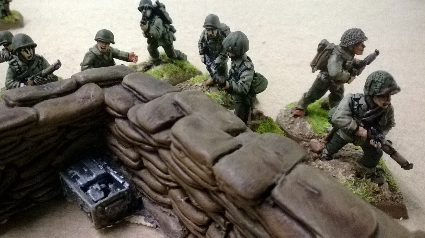 Please don’t tell anyone but I’m told it sometimes happens even to wargamers in their prime. I have to admit, I didn’t have enough miniatures! There I’ve written it! I’m not proud of it but to stand any chance against James’ Japanese Island clingers, I had to upgrade every single unit to veteran and shamefully proxy half tracks and a Sherman for Stuarts. Note, James wouldn’t let me have Shermans due to unending search for historical accuracy! We were so bad with the rules, it was laughable. On a beach of blood, the U.S. Marines managed to finally take the nearest bunker. Airstrikes took out another Jap bunker, and an American tank, for a drawn game. I need more 28mm riflemen!