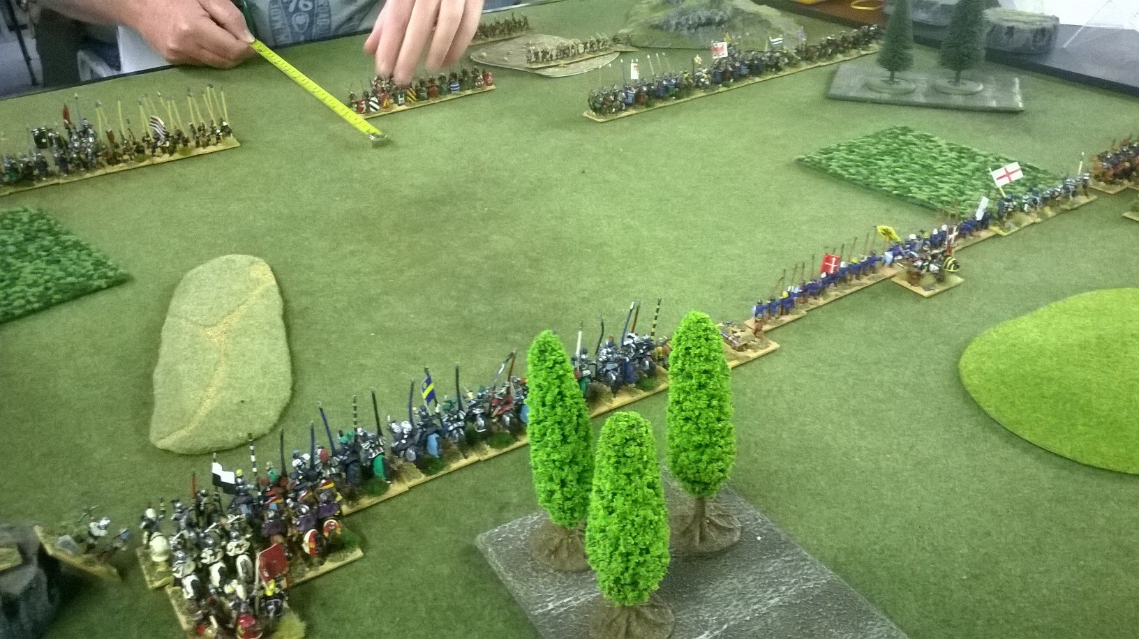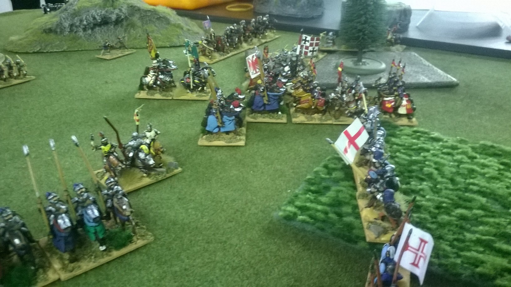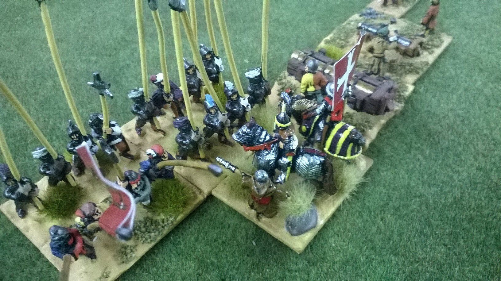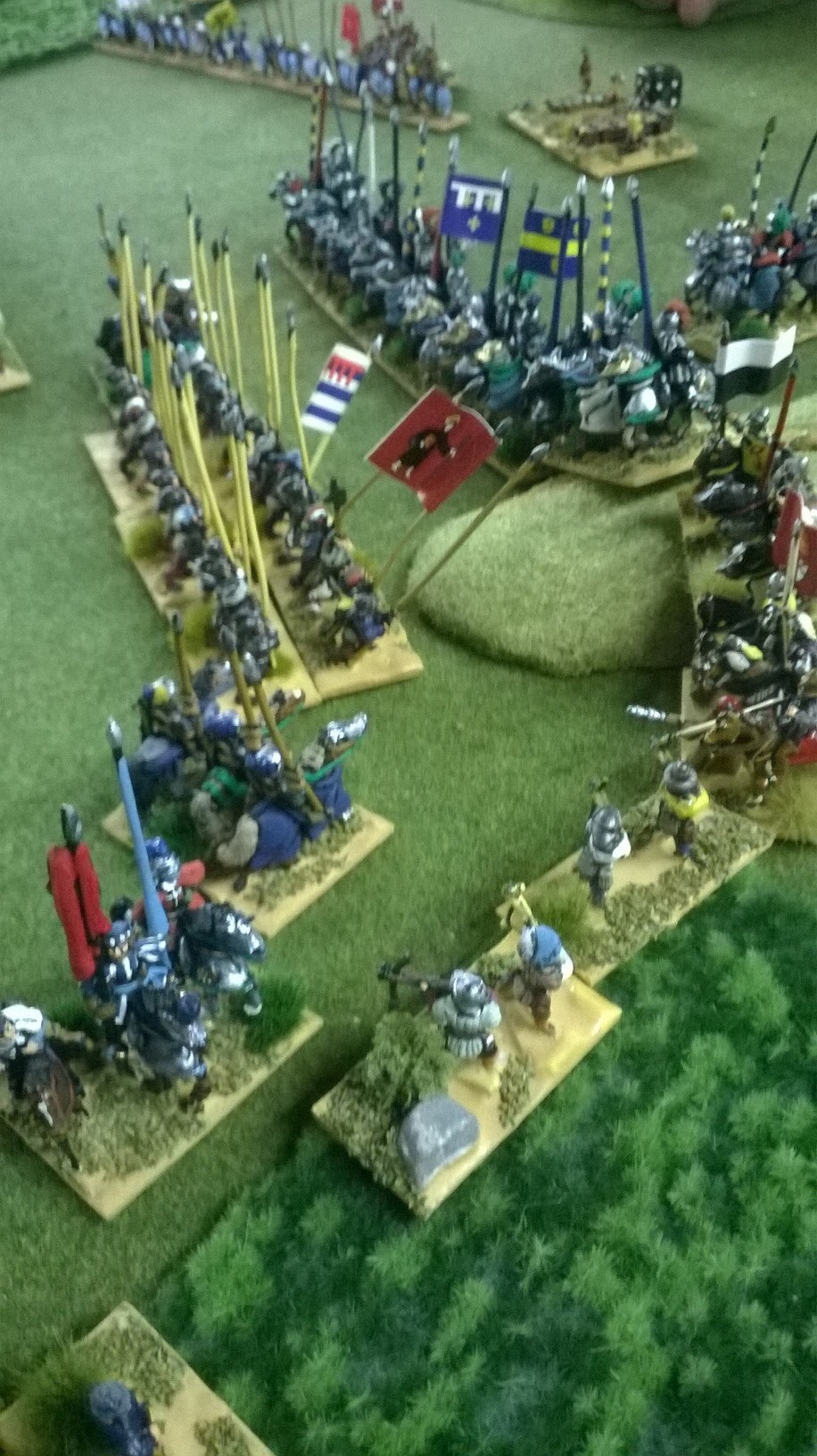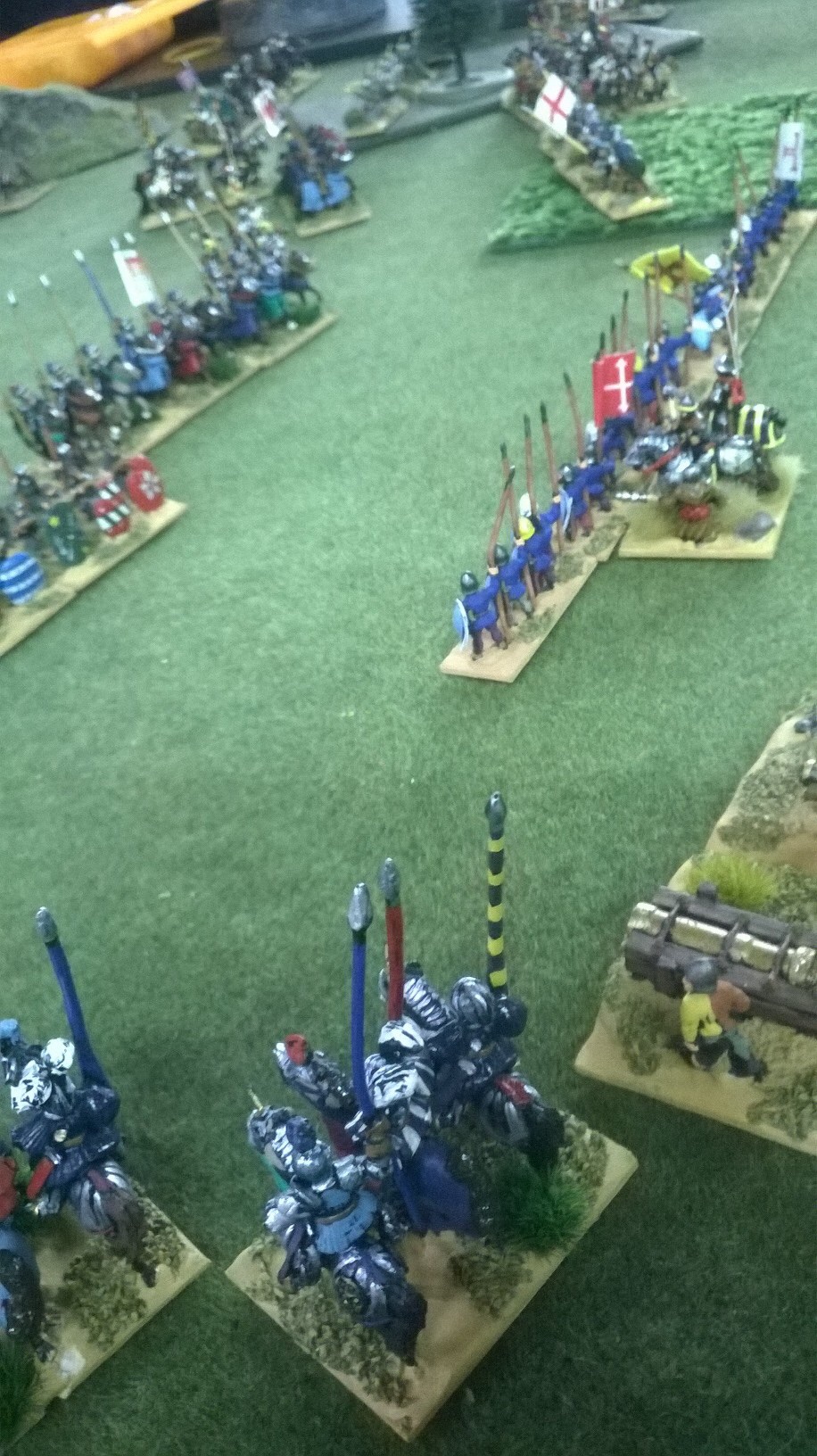 Chris was obviously confident that God would ensure victory. Richard’s pike advanced to the bottom of the ridge and waited for the condottieri charge.