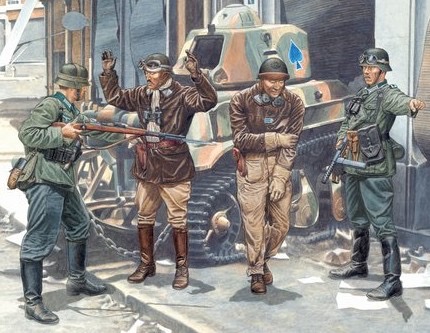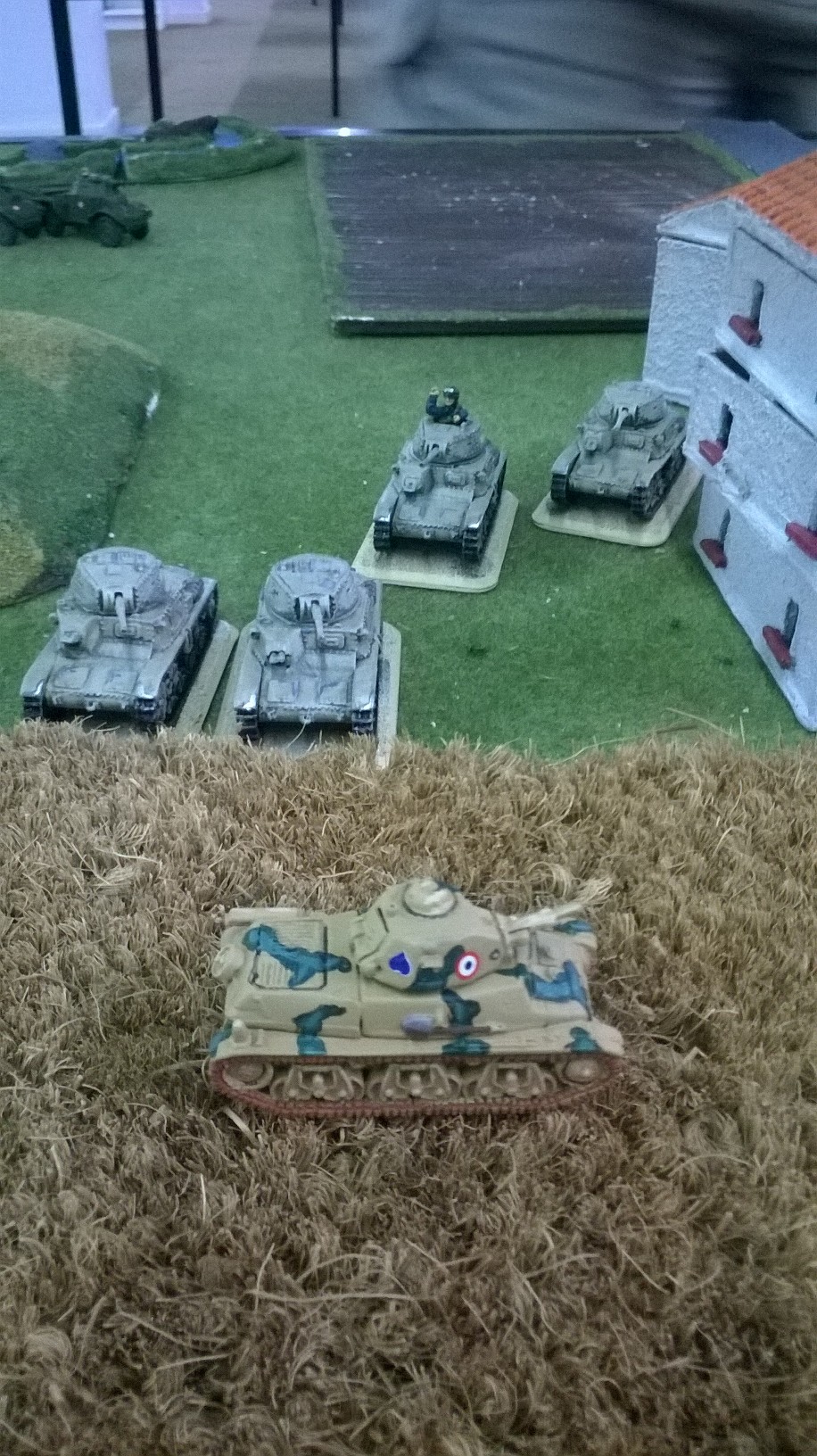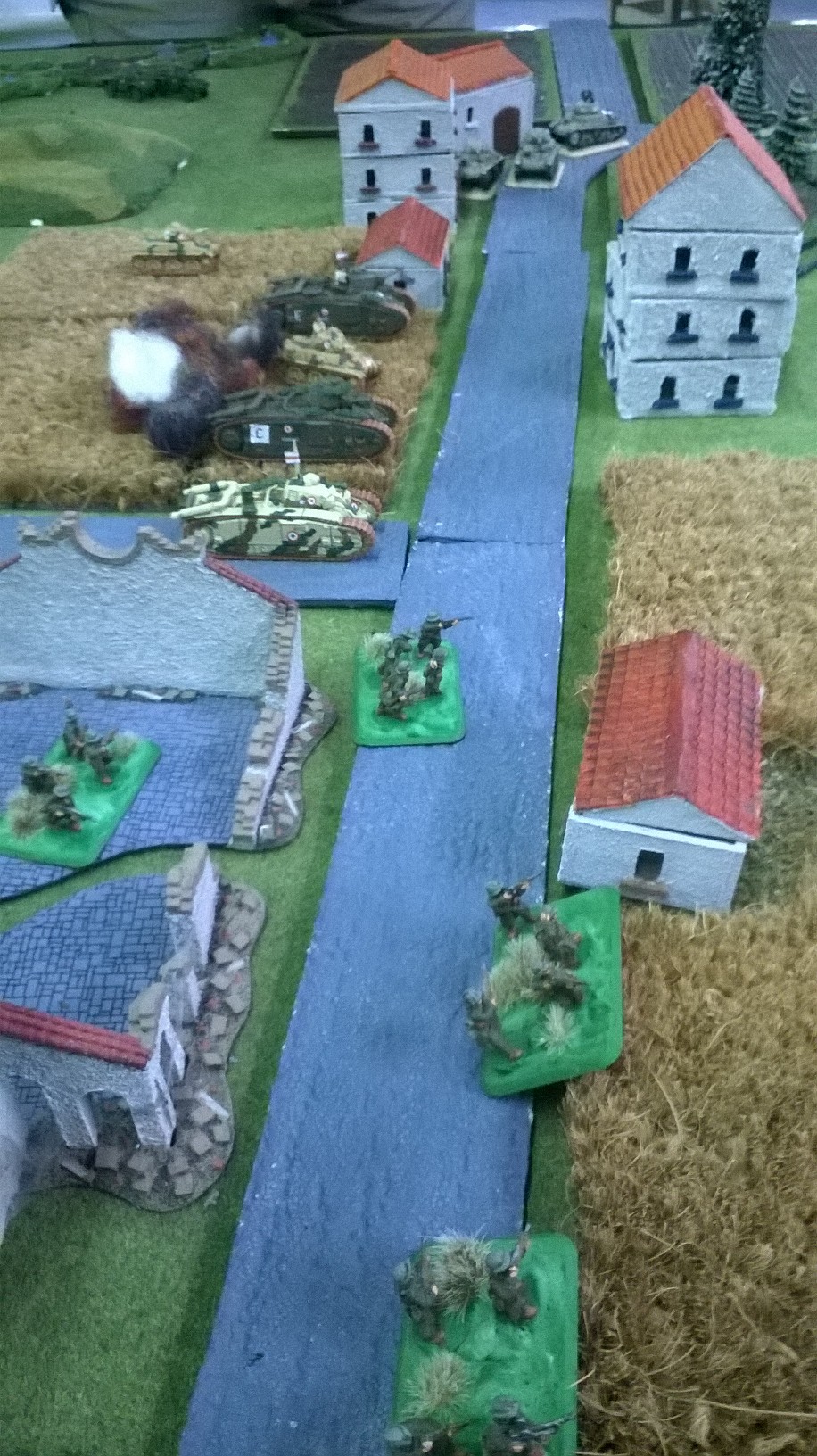 The ostrich plumed elite infantry followed only to be machine gunned by the French tankers. But reserve tanks were now sending flank shots in against the Laffys and poor old Hotchkiss tanks. Four-three to Alun!