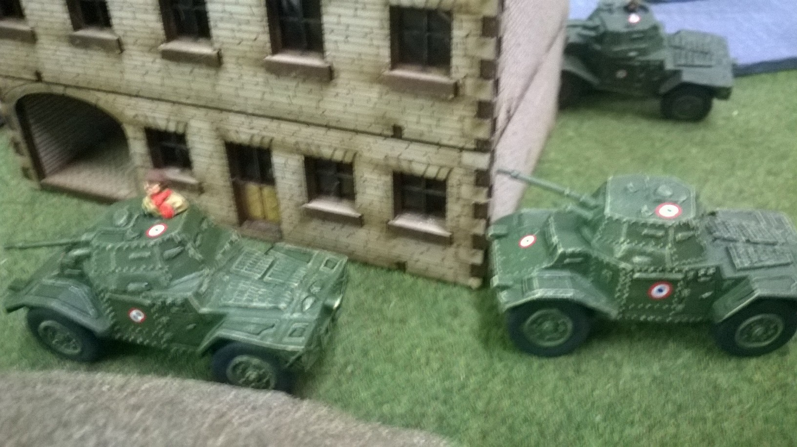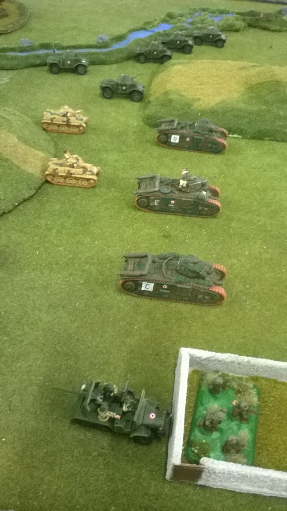 I went for a Char B company commander, a platoon of three Char Bs and one of Long-barrelled Hotchkiss. In support I had five Panhard armoured cars, a short platoon of voltiguers and the infamous Laffy self propelled anti-tank guns.