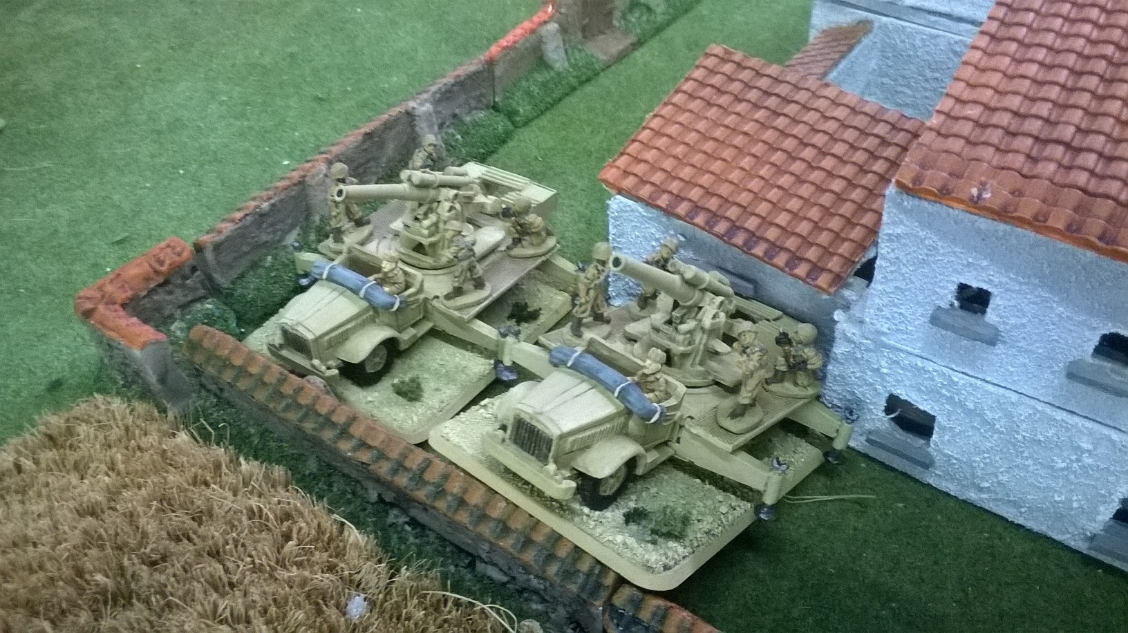 My armour held out surprisingly well. The coastal battery disappeared into smoke, followed by the M13s. If only I had remembered the French rule that means I could have placed the objective four inches nearer to my start lines. As it was Alun had to send forward his artillery commanders to hold on to the central objective I.e.the yellow Char B in the photos.