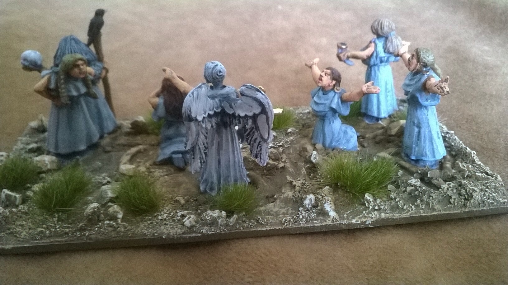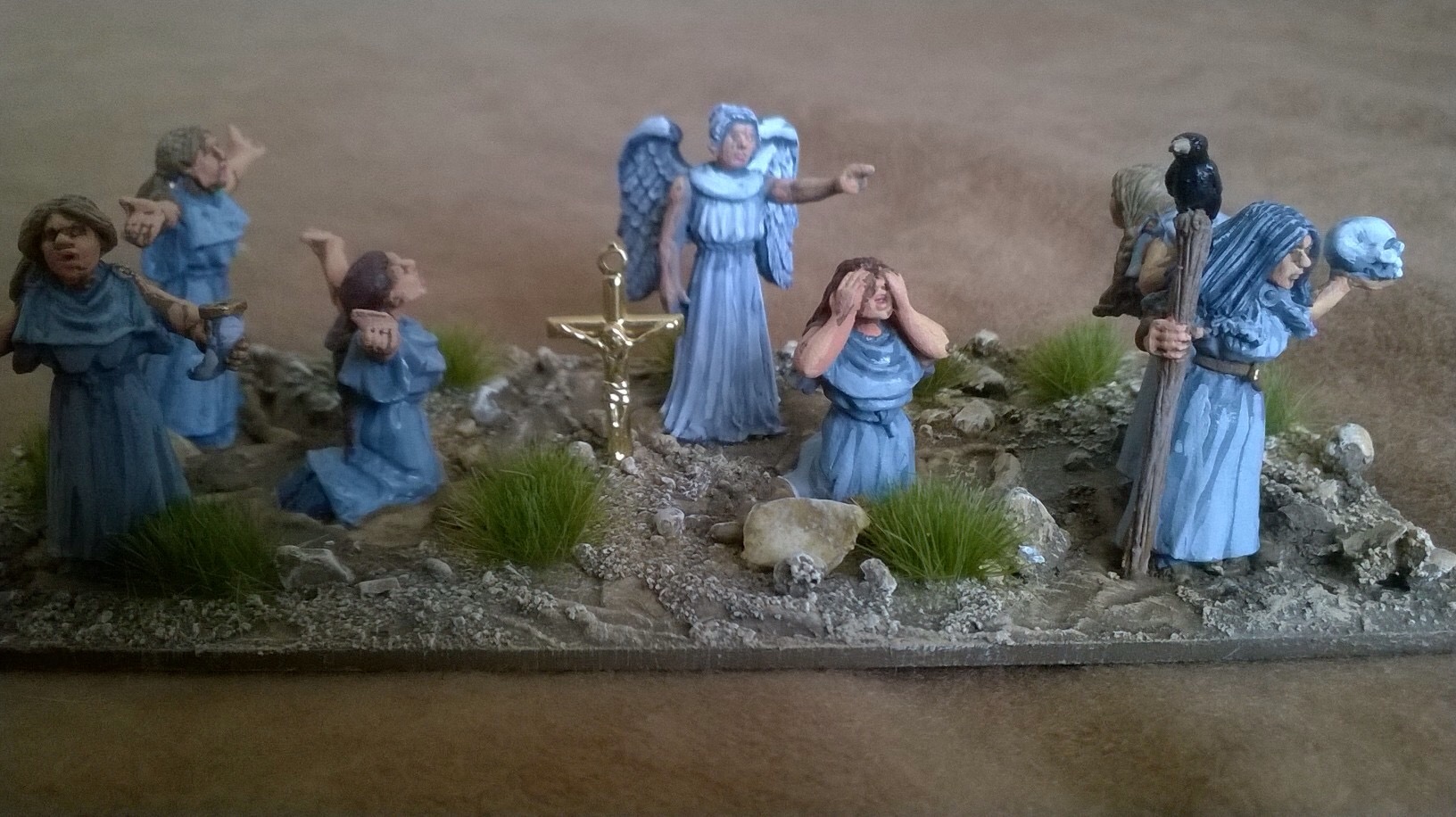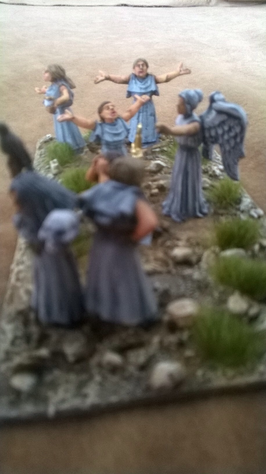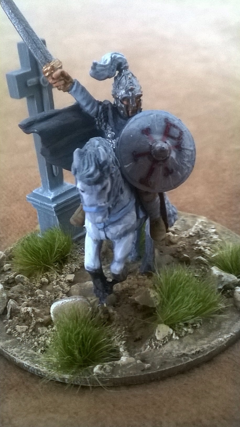 They were supposed to be done for Virtus 2015, last December. But, finally, my Late Romans are beginning to get finished! Above, the Angel is telling the camp to mend their ways if they are to defeat the heathens.
