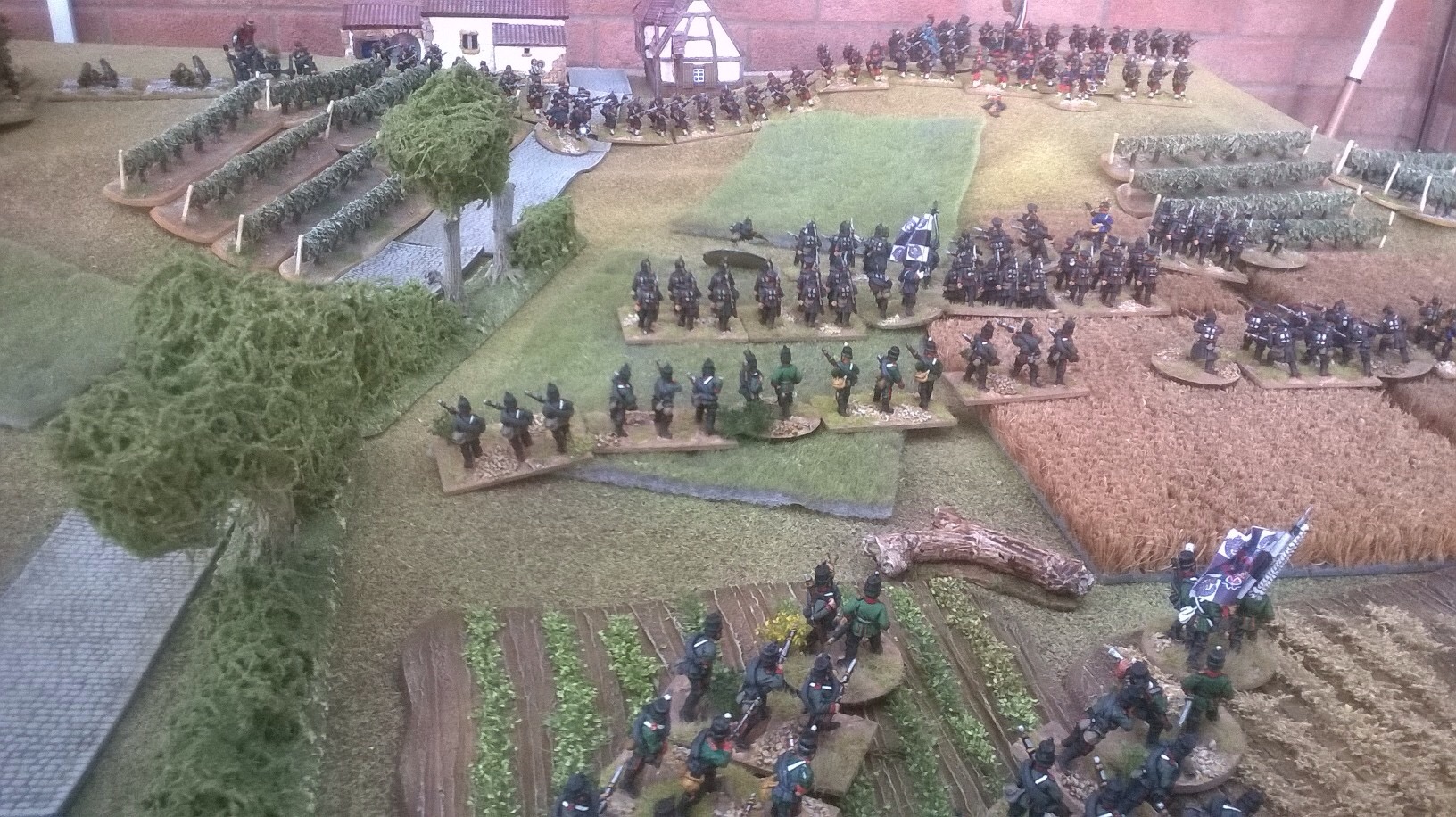 My troops on the left were on the forward slopes of the heights. In this assault the Prussians combined artillery support with fast moving infantry. The French infantry clung on and contested the ridge.