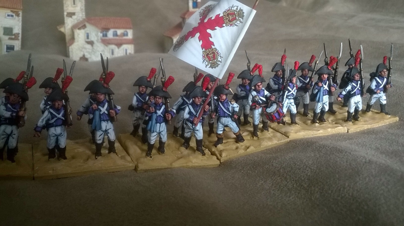 What started as tidy up to expose the floor of my ‘daughter’s’ wargame room/ bedroom has now gone into overdrive. When I was young and foolish I started a Napoleonic Spanish army. The idea was to face off the French revolutionaries but the wind changed and so did my plans. Black Powder seriously underestimates the power of the Spanish infantry. I know you are free to alter the statistics but the lists are the lists! The army’s finest hour was defeating an elite Franco- Polish force under the command of Panzer Pete, who wasn’t best pleased. So. The units are on eBay, run a search on 28mm painted and you will find them. Mention you read the blog and I may throw in a free gift!