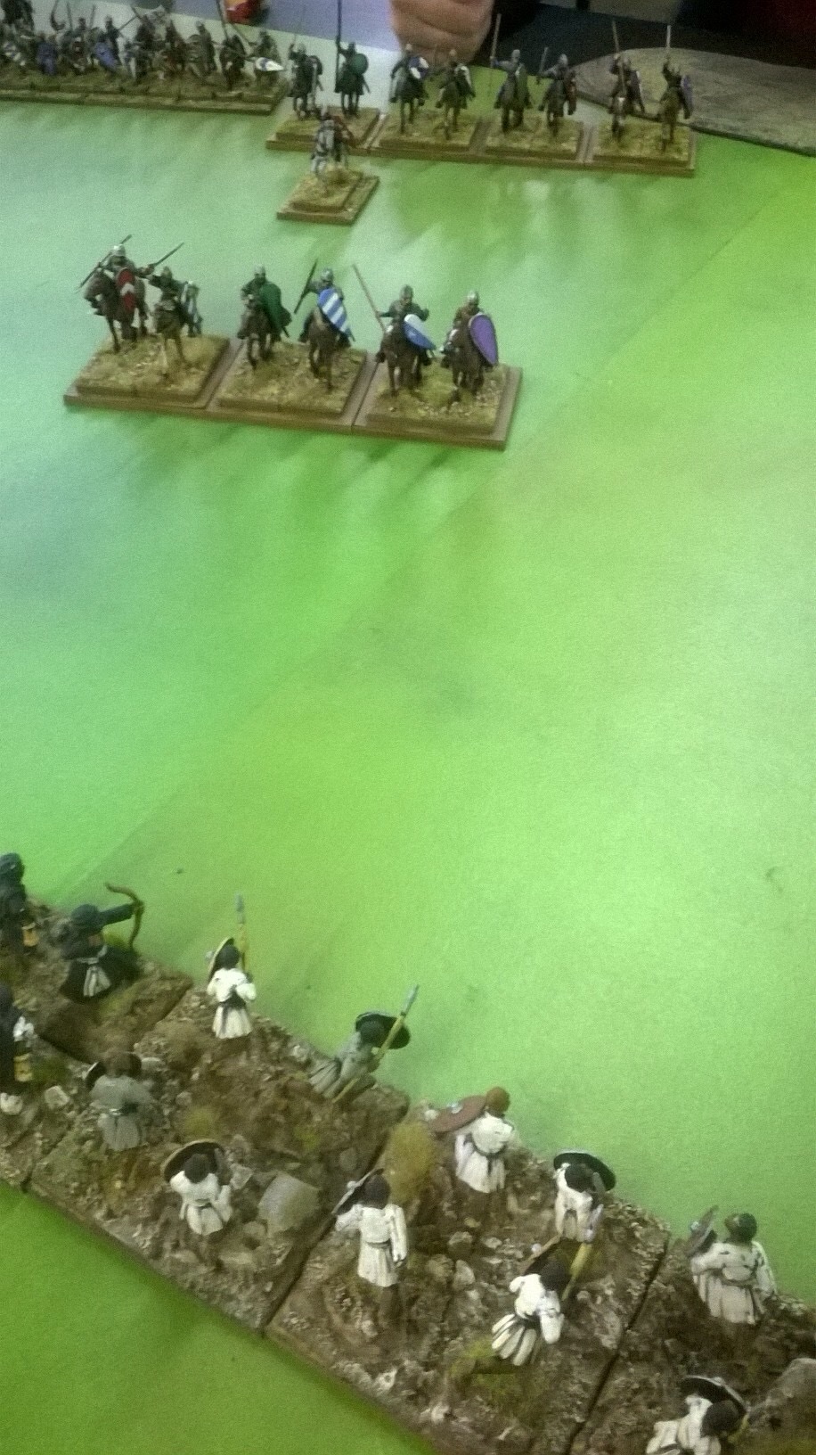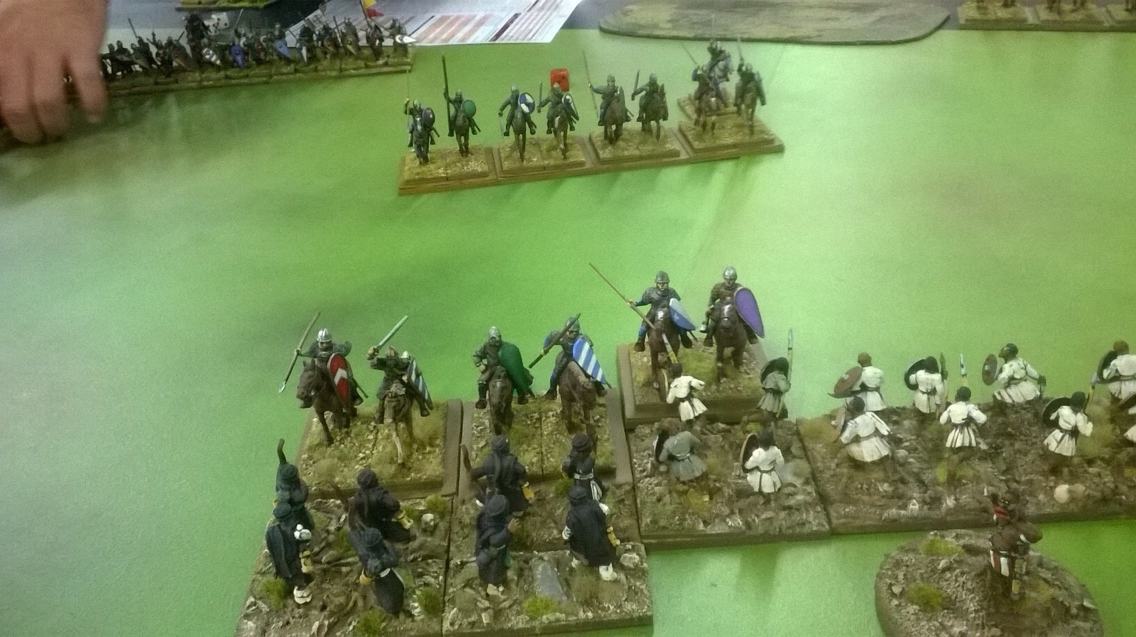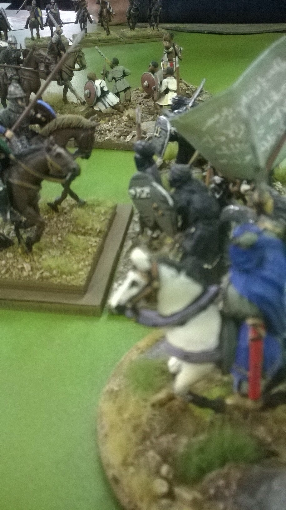 We were now at ninety degrees to our starting positions. We had both lost one corps in the melee. My jinetes managed to delay the Norman spearwall just long enough…..It had been a really tense game. Whether it would have been better for Steve to field his horsemen as medium knights only next game will tell. Time Commanders is back on T.V. , my Fanatics have found
