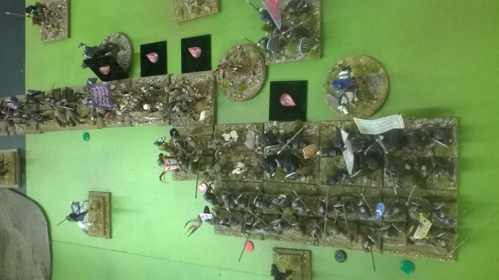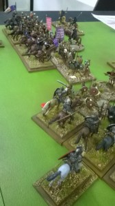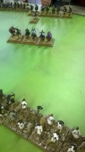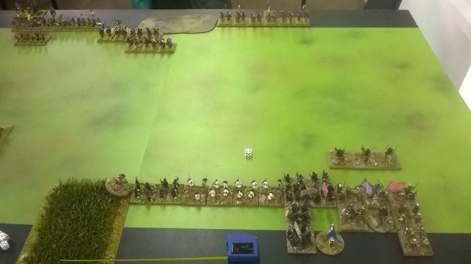 We thought to keep our L’art de la Guerre armies contemporary so I brought my old reliables, the fanatic Berbers. Steve plumped for the Normans and Franks of 1000 A.D.. After too many defeats than I care to remember, I was going to go for safety. I planned for a solid line of spears and skirmishing horsemen to discomfort the infidel.