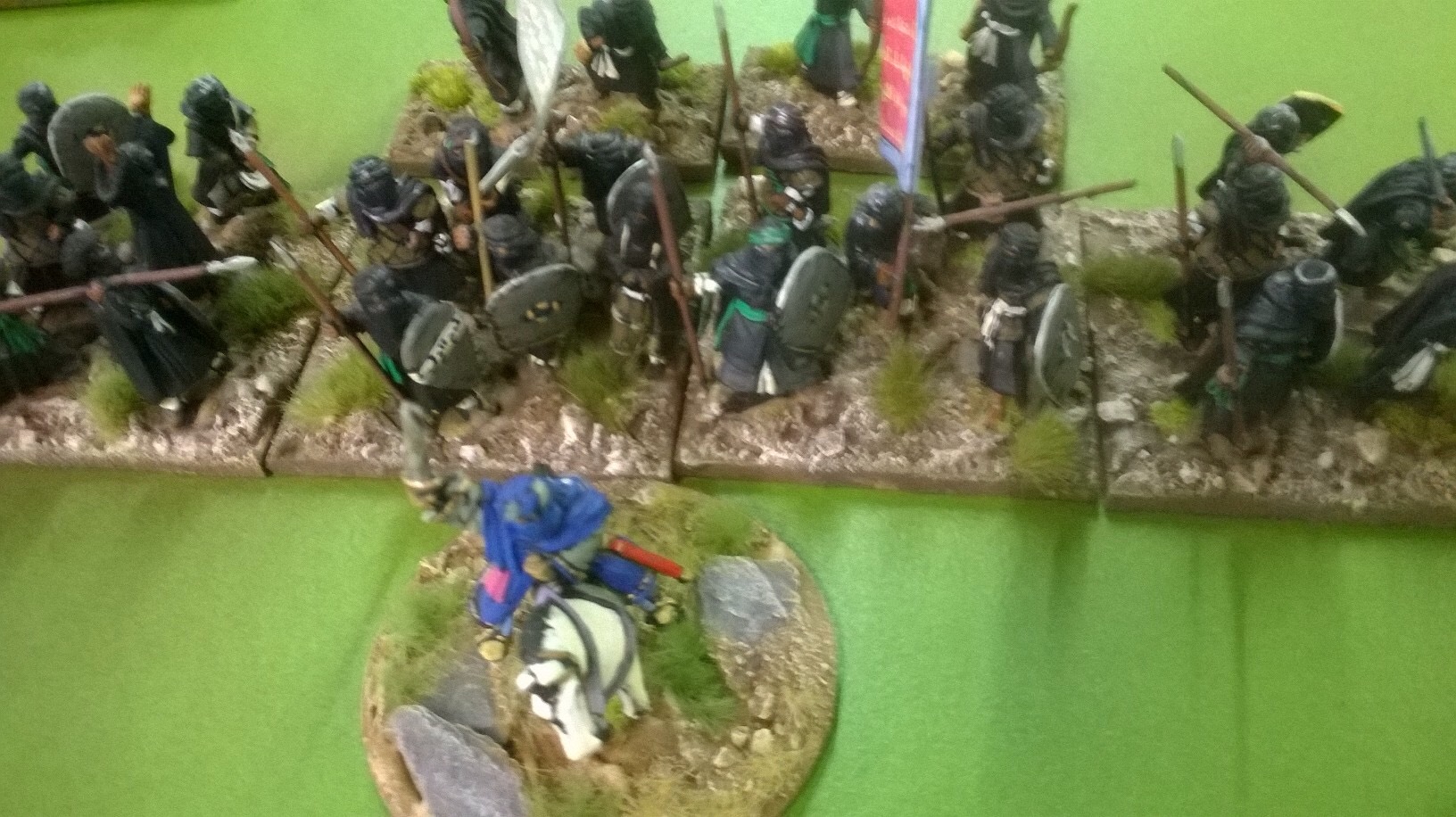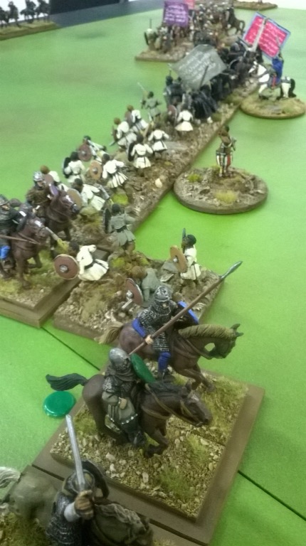 Steve is a renowned brush “man”. He always has a new project underway and the quality of his work is first class. His Norman army comprised a corps of heavy spear accompanied by two crossbow units. He divided up his heavy cavalry into one elite and one ordinary command. Both corps of horse were impetuous so the game was going to be a titanic clash.Steve is a novice wargamer but the impetuous rules are not for the faint hearted. If those impetuous units are within movement range, you will need three command points to stop them.