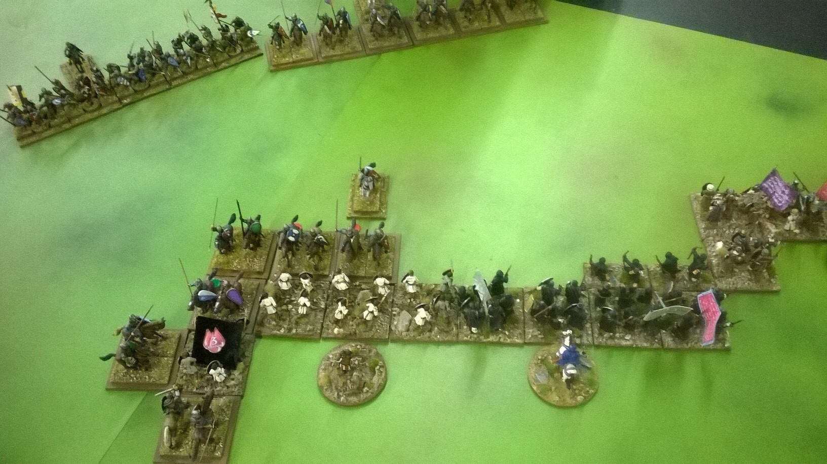 Steve held his elite cavalry back on his left and proceeded to attack my flank en echelon…