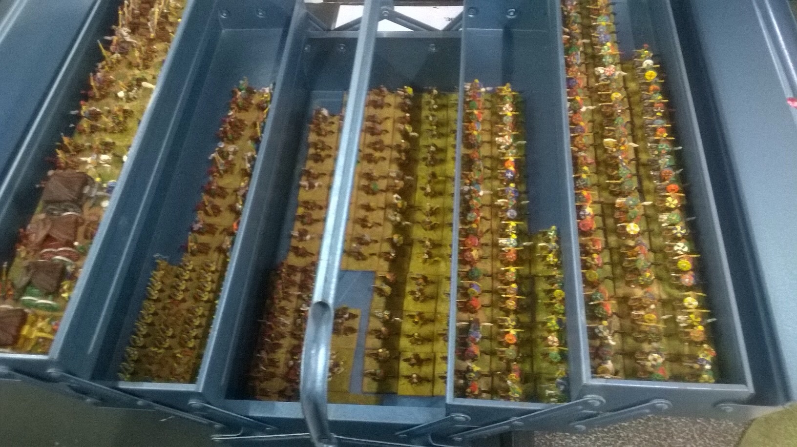 Younger gamers look away. Mike has collected this lot over many years. He tells us that many haven’t seen daylight for ten years. It’s to be hoped that L’art de la Guerre continues to rescue such collections from the darkness of the spareroom. We were playing a classic game of Patrician Rome against the remnants of Attila’s hordes.
