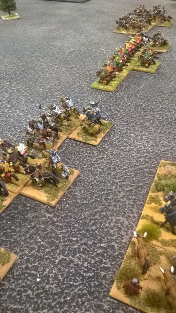 In classic nomadic horse archer style I thought to envelope the Alans. However, my ally had other ideas!