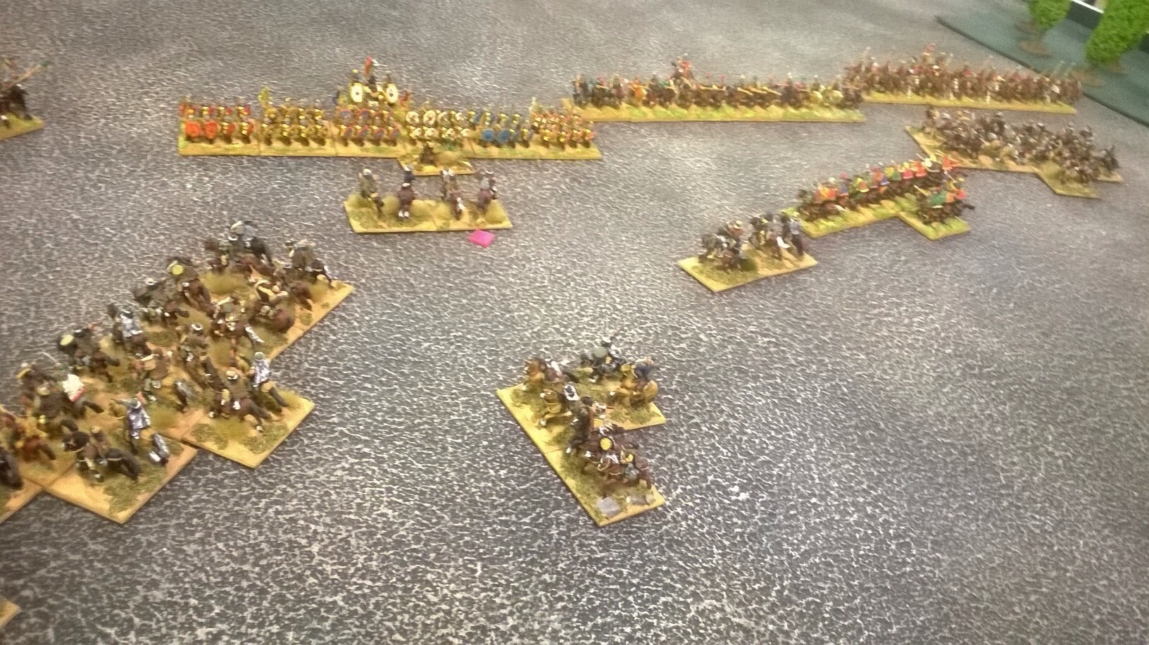 The glory days of the Legions are over. Mike had an infantry centre of medium swordsmen auxilia. Would they stand up to battle in the open? They should hold up against the Hun light horse but the heavies?