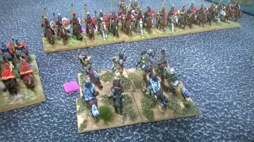 The glory days of the Legions are over. Mike had an infantry centre of medium swordsmen auxilia. Would they stand up to battle in the open? They should hold up against the Hun light horse but the heavies?