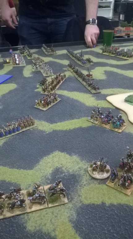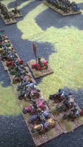 We had gone for Sassanids with Hephthalite allies ( along with three other teams!). Rob’s army was almost exclusively Sassanid heavy cavalry bow. My Huns were two corps of mainly medium cavalry archers, with a very useful command of light horsemen.