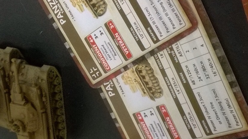 The many changes are detailed on the Flames website and associated fan sites. My first thoughts were that the cards were a rather nice addition. They certainly negate having to keep referring to the army lists or codex for the space pixie generation. In earlier versions you had to take a set number of platoons before you got support choices. In version four you can field multiple formations in order to get the right mix of units. Two tank forces wor the thirty points in the new system gave James A six British tanks versus my four DAK panzers.