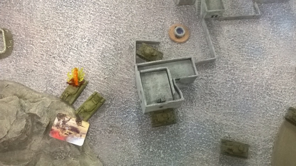 I smelt blood but James rushed the objective with his remaining platoon of Crusaders. That fourteen inch move is a force multiplier. I had him, I thought. Four tanks shooting into the rear of the Crusaders. Regular readers will know what happened next….one failed terrain roll , three misses and the stormtrooper move to contest the objective was timed out. Somethings don’t change…