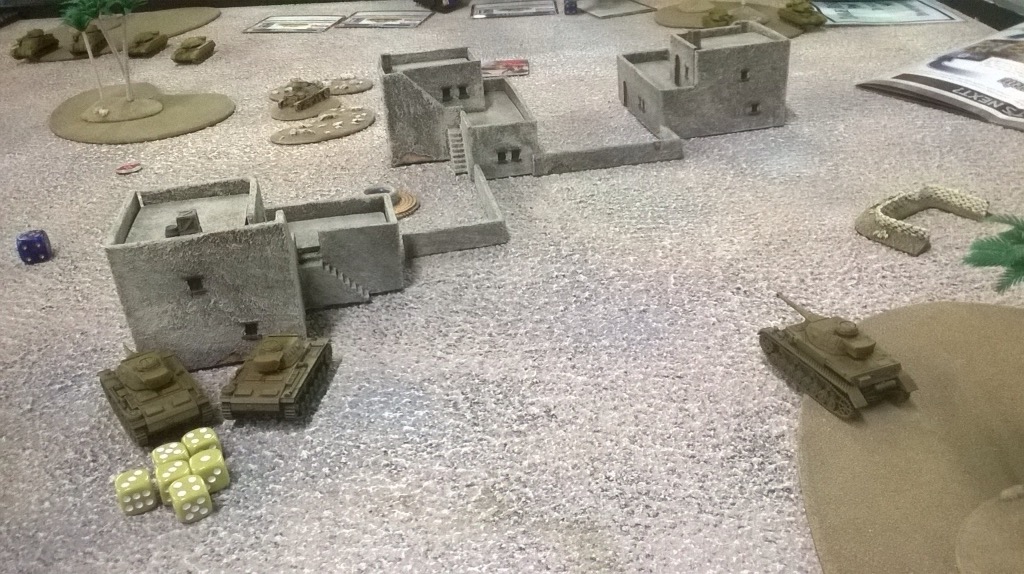 Within two turns the British had lost a platoon. I was beginning to like this old friend. James brought his Grants up but they could not negotiate the palm groves. Notice that I did not say that they bogged- there is no bogging in Version four!