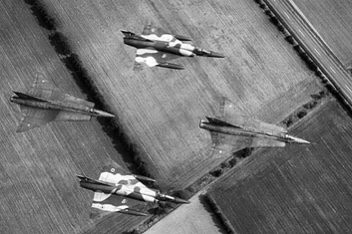[2] Danish Royal Airforce Saab Drakens fighters (central in dark camo) fly a mission over the German countryside, alongside their Belgian comrades (original 1980’s photo)
