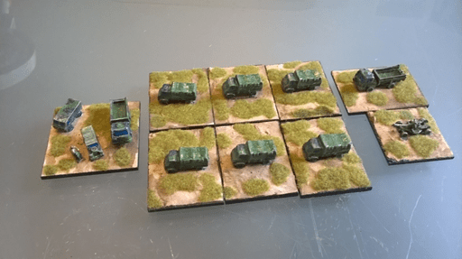 [9] Danish Motorised Infantry company in Unimog trucks, with an HQ base and integral 40mm Bofors towed AA gun.