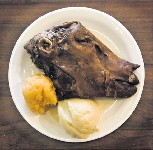 [12] Lunch Break: Traditional Danish boiled sheep’s head with mashed swede & potatoes – a delicacy (apparently)