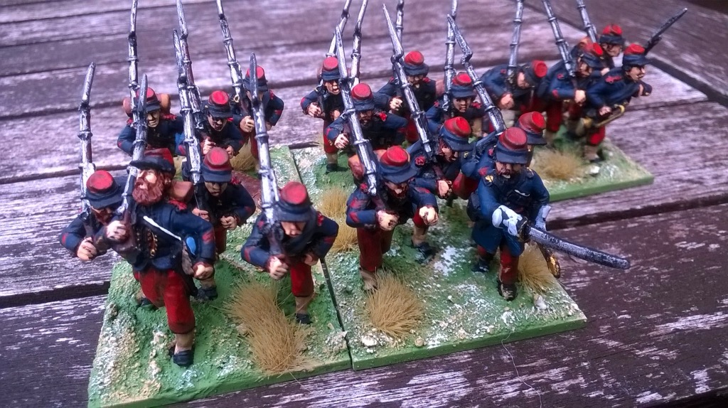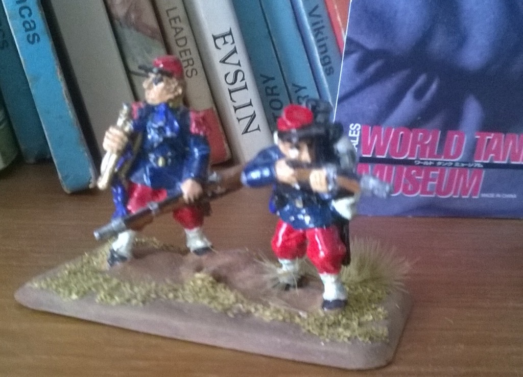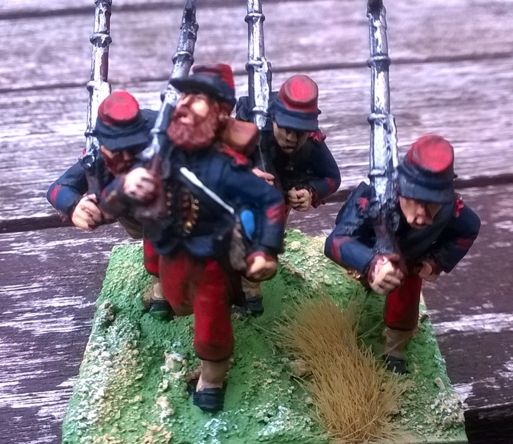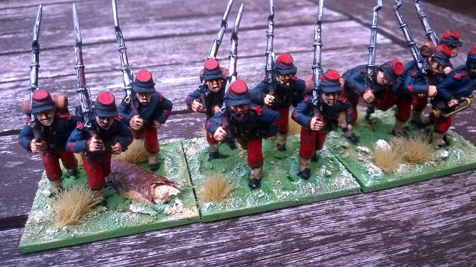 Now, two points need to be made. My regular reader will know that I’ve been attempting to “rationalise” my collection over the last few months. The miniatures above are at least thirty years old. I can remember planning a Franco Prussian army but this solitary stand was as far as I got, I’m sure you know the story. One thing I noticed as yet another box went off to eBay was the quality of my painting all those years ago. I don’t know when I last tried to paint eyes on a 28mm mini but the bright colours still attract me.
