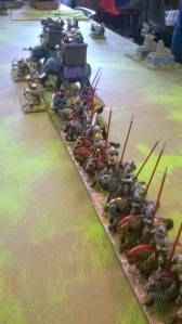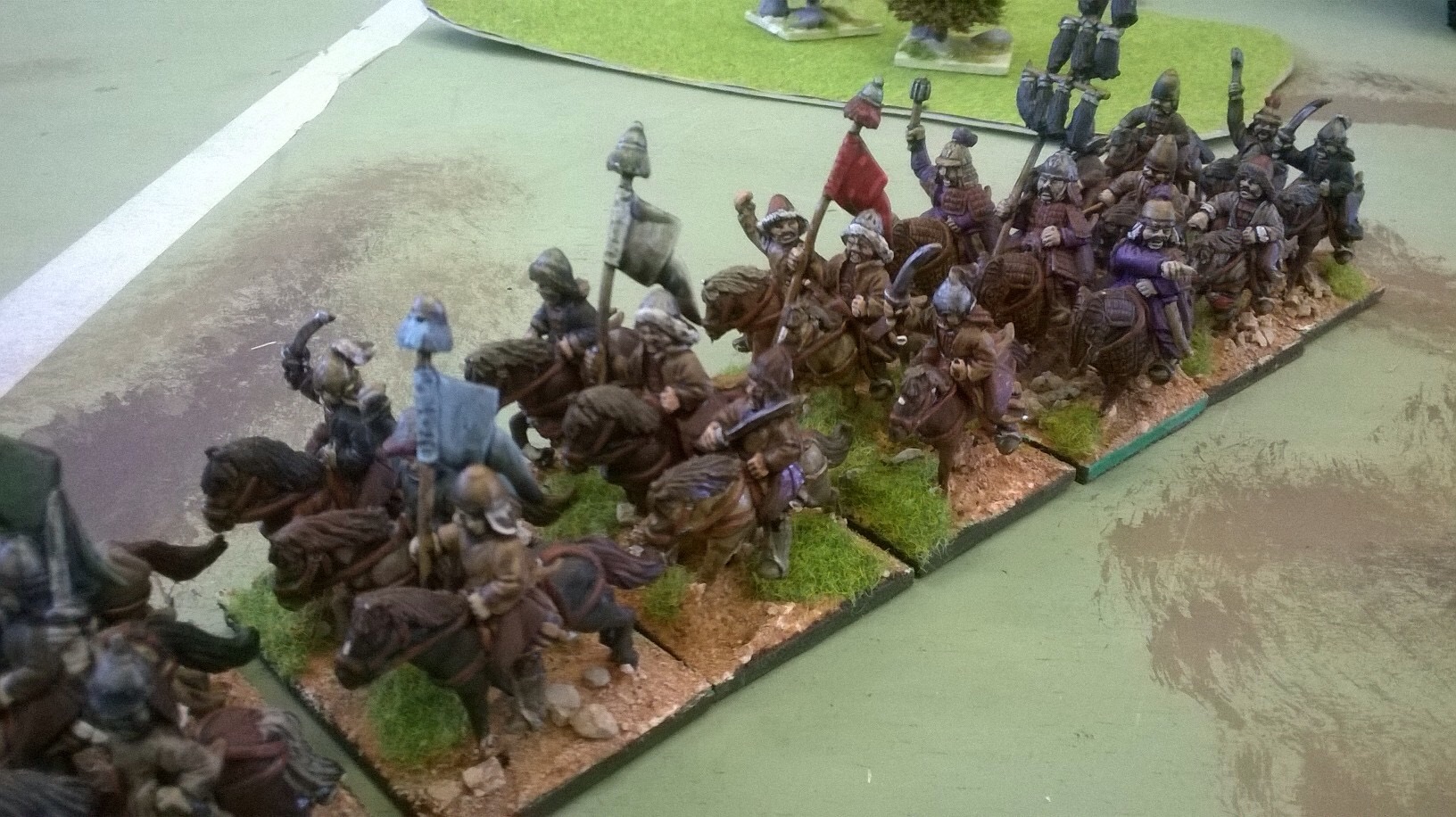 Timed out- constant tea drinking had lulled mr Irving into a relaxed attitude towards time…….it had cost a lot but Byzantium had survived round one. Dino next with his Tribal Mongolians. These had been my nemesis at my last tournament. Dino may give the impression of a gin soaked lush but scratch that Serbo- Croatian skin and there beats the heart of ruthless commender of little lead men..