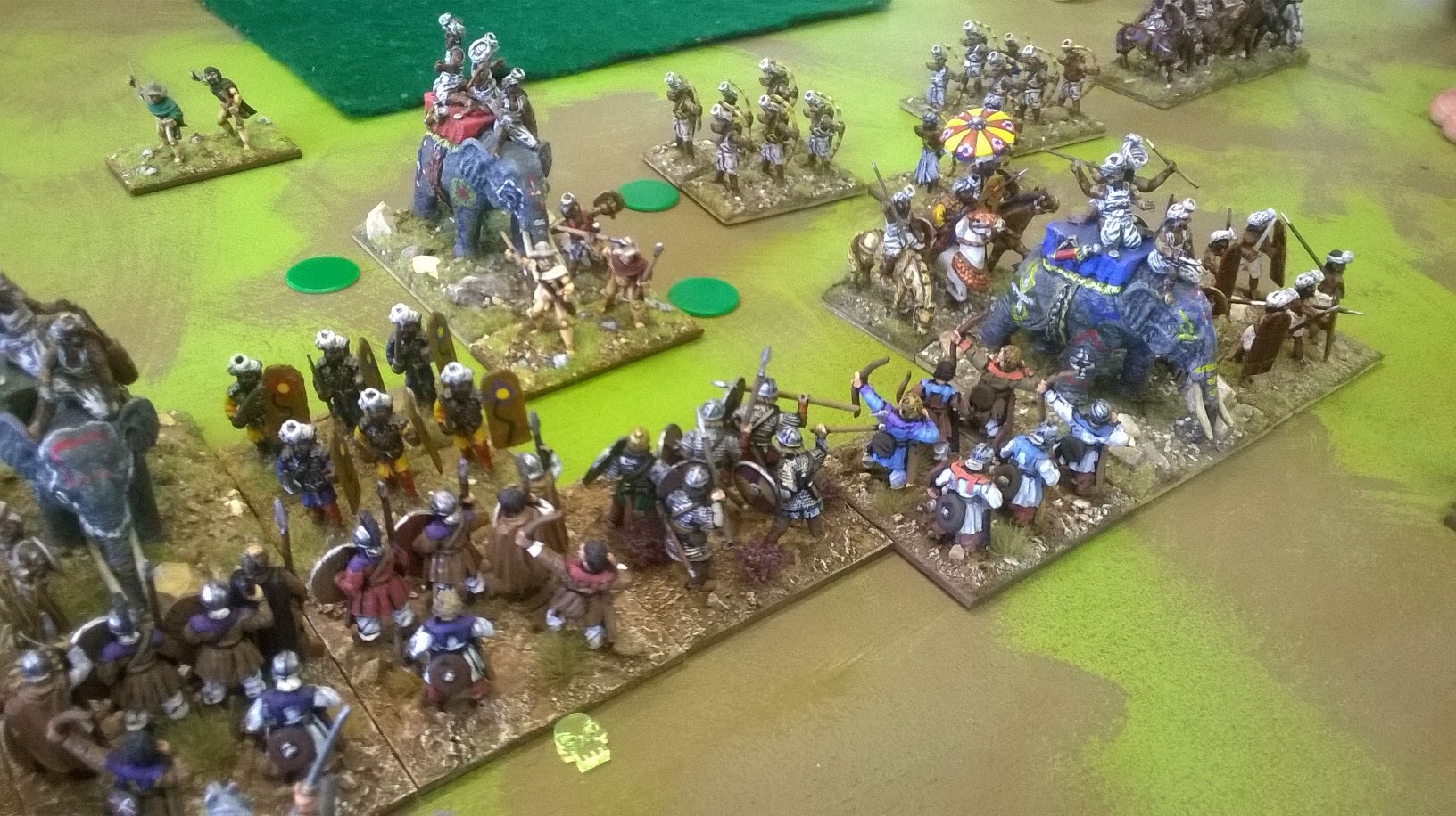 “Look what kebab boy has done! He thinks he has a longer line but he’s dependent on his right wing medium swordsmen standing up to the elephants in the scrub where elephants are not penalised”
