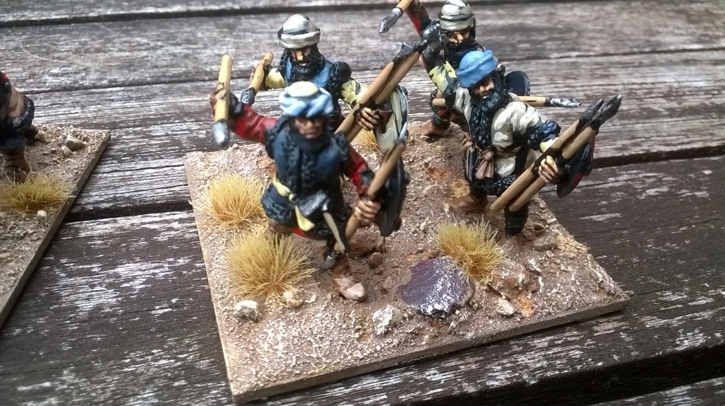 It’s been a productive week hobby wise. Nevermind the six miniatures a week minimum, we’re up into the low forties. Even The Despertaferres Jugend have been painting this week ( next week’s article😥). First off I finally managed to get these Armenian hillmen finished. I know they are three weeks too late but I am rather fond of them. They are the new style ” chunky” Gripping Beast style ( from the Timurid range and the same sculptor I would think as the Teutonics) I love this style but I know the majority of you perhaps prefer the more “realistic/older style”. Great minis and on the large scale. My only gripe is the shields are of the impossible to stick variety. This is the only area where plastic wins hands down.