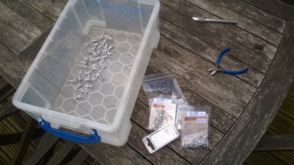 Day One, pretend to be fixing the fallen down fence panel whilst cleaning up seventy miniatures. Xyston miniatures are without a doubt my favourite miniatures, so characterful and crisp.