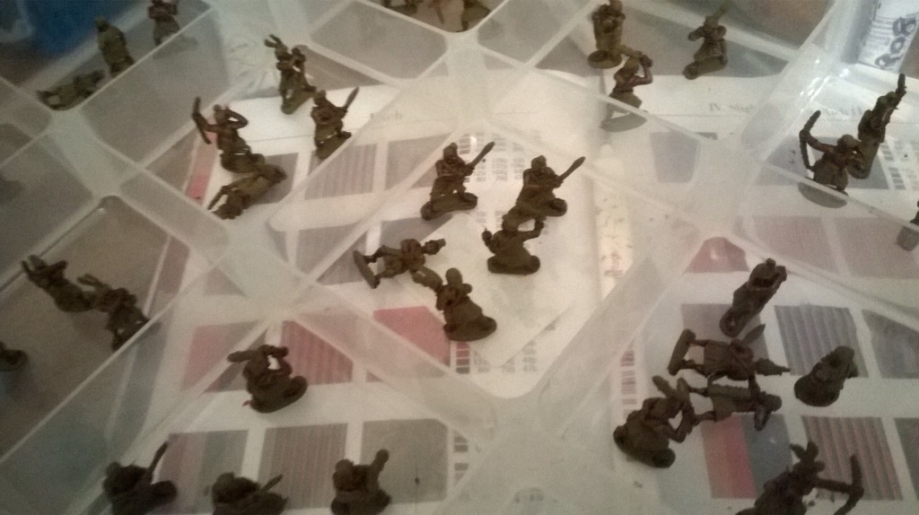 My regular reader will no doubt remember that I set myself a weekly task, namely six painted miniatures a week. Now, I know what you are thinking, where are they? Well having kept up the task for a month, I must admit to having slipped. I did base some trees but the task of painting a 15mm competition army in two months has used up all my hobby time. And, two weeks into the build, I have most of the infantry done. I have gone back to what are known as “rattlecans” , on the advice on my favourite YouTube gaming site, Tabletop Minions. The trick is to limit the palette and let washes substitute for any real artistry.