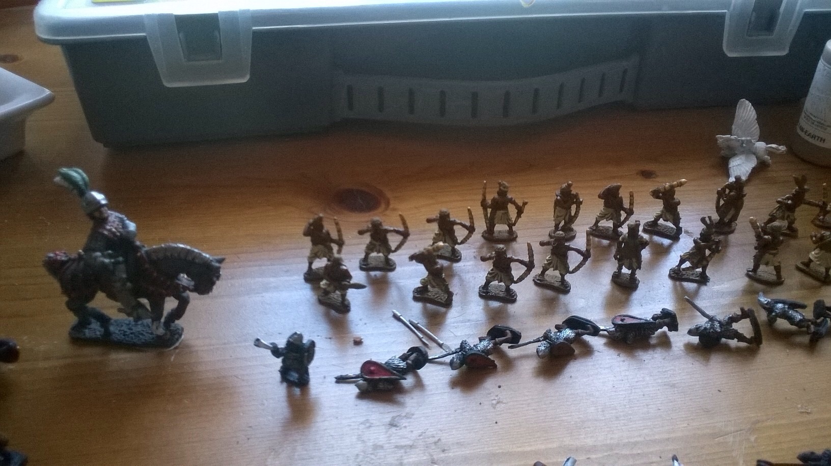 And our new approach is saving money. If you mix up too much paint, slap it on the next minis in the queue. Below we have khaki horses…..on the Bayeau tapestry they were green!