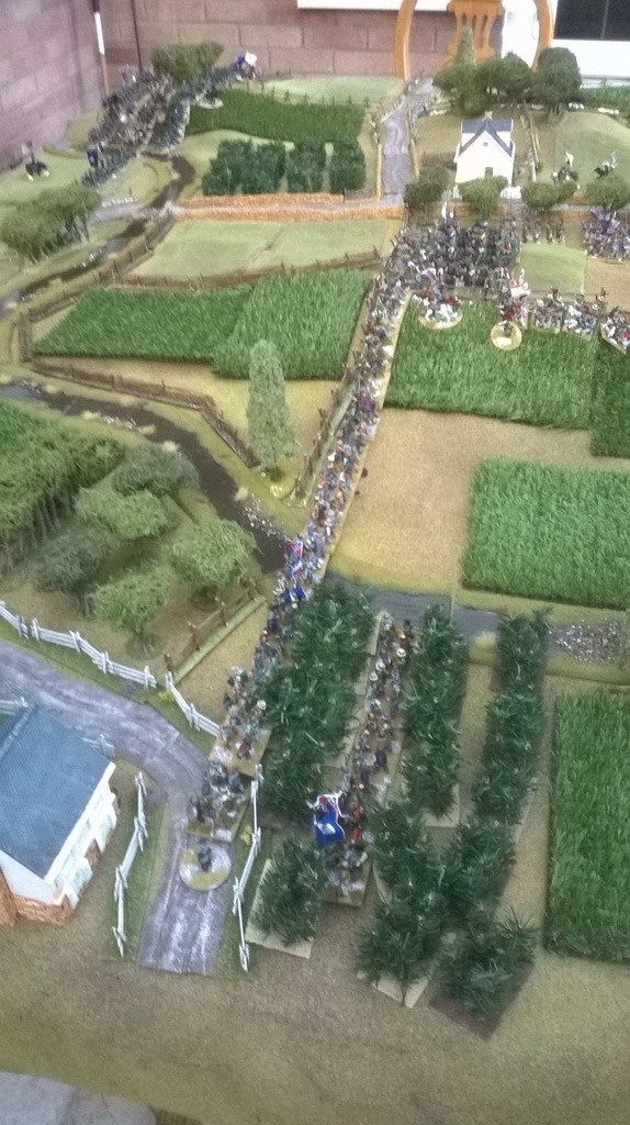 Rather, I would rely on two converging columns. I thought that my right hook could turn into a feint as the Confederates massed in the cornfields to the rear.