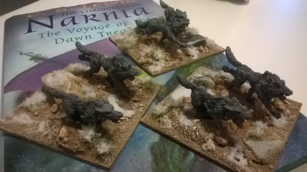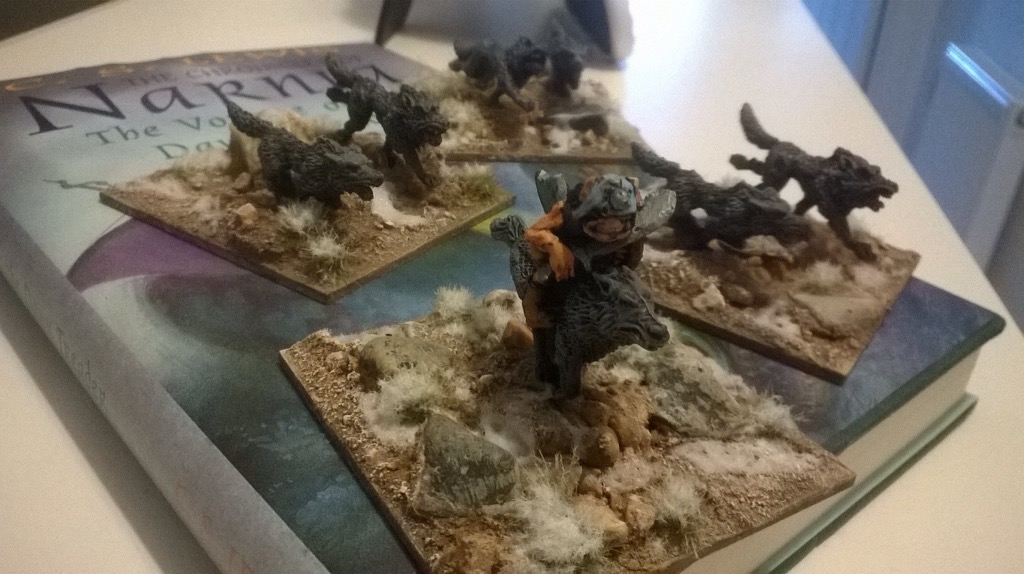 Raised for the purpose of intimidation, reconnaissance and spying, these are the first miniatures for my second son’s Narnia collection. Most infamous for chasing that arch- traitor Tumnus, these wolves of the White Queen’s secret police are the latest attempt to brainwash my sons into collecting minis.