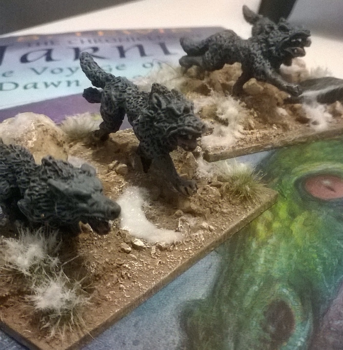 Raised for the purpose of intimidation, reconnaissance and spying, these are the first miniatures for my second son’s Narnia collection. Most infamous for chasing that arch- traitor Tumnus, these wolves of the White Queen’s secret police are the latest attempt to brainwash my sons into collecting minis.