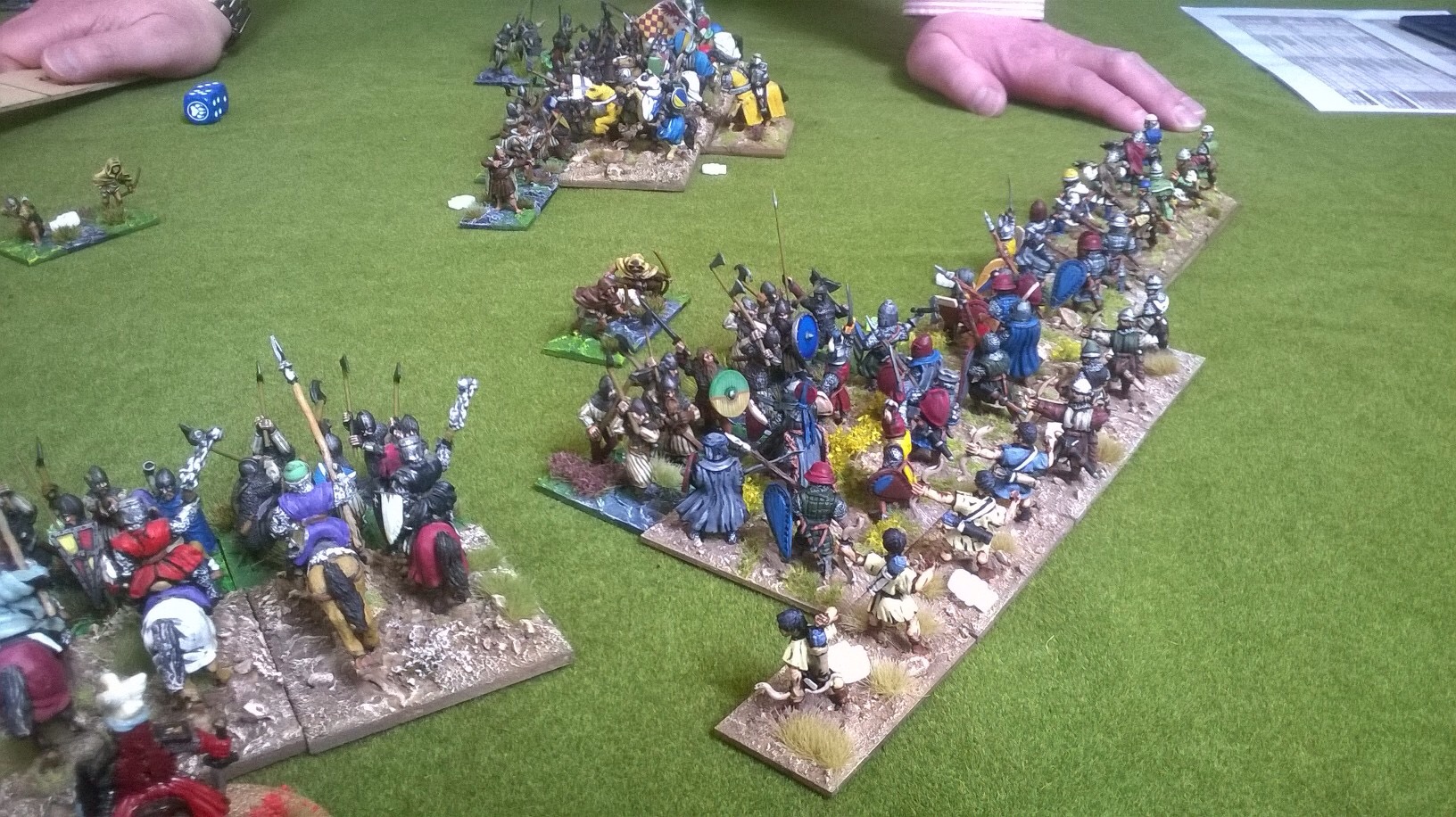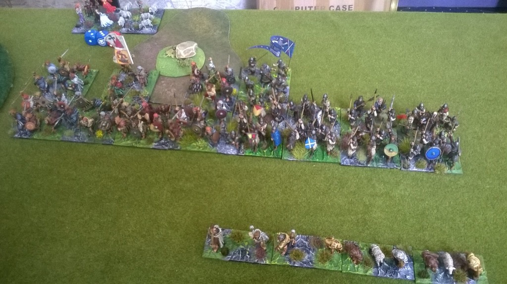 Almost all the terrain went off to the flanks and my knights were already issuing their challenges to the great unwashed host before us. The island warriors may have their two-handed axes but lances are just so much more modern.