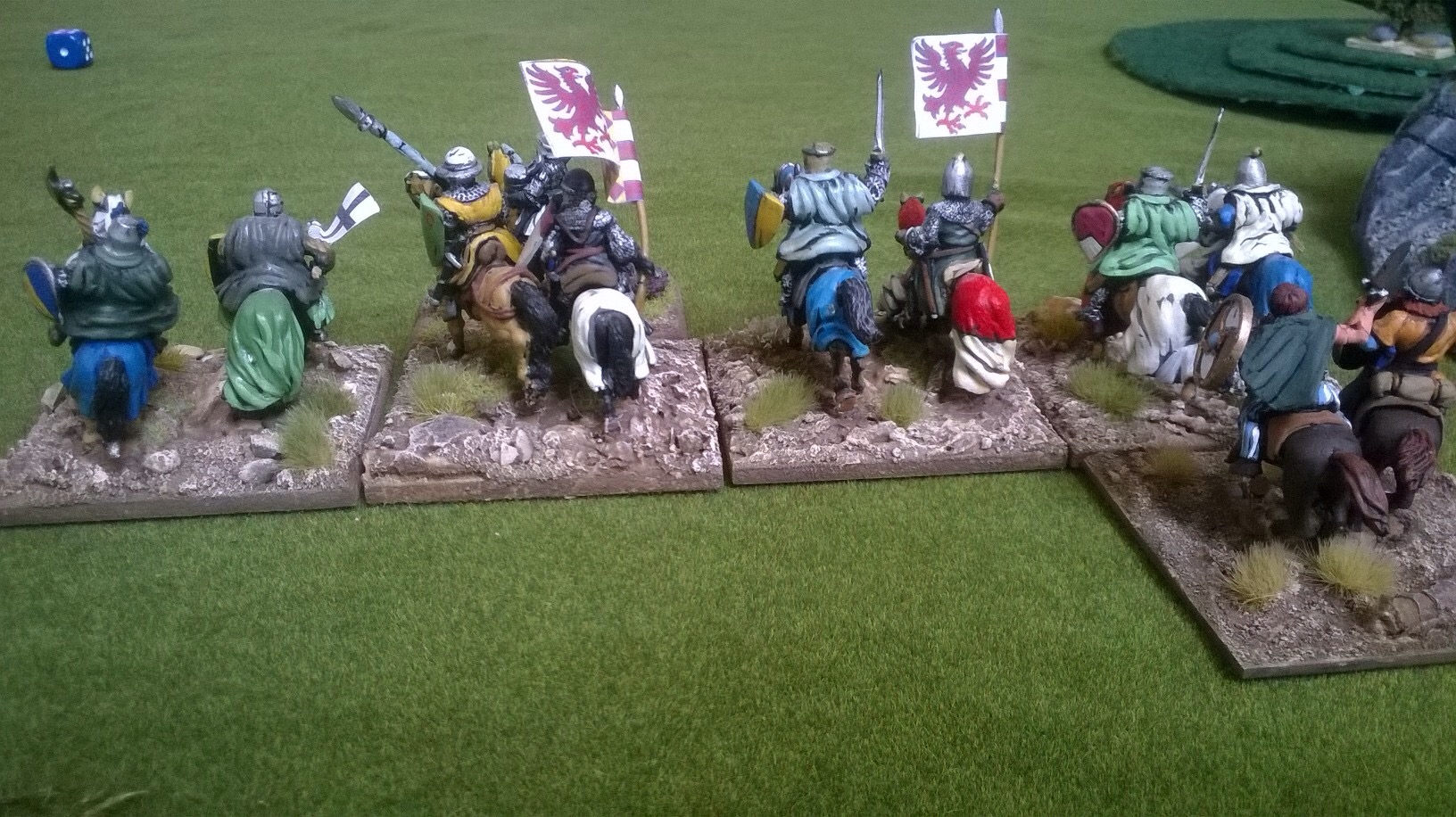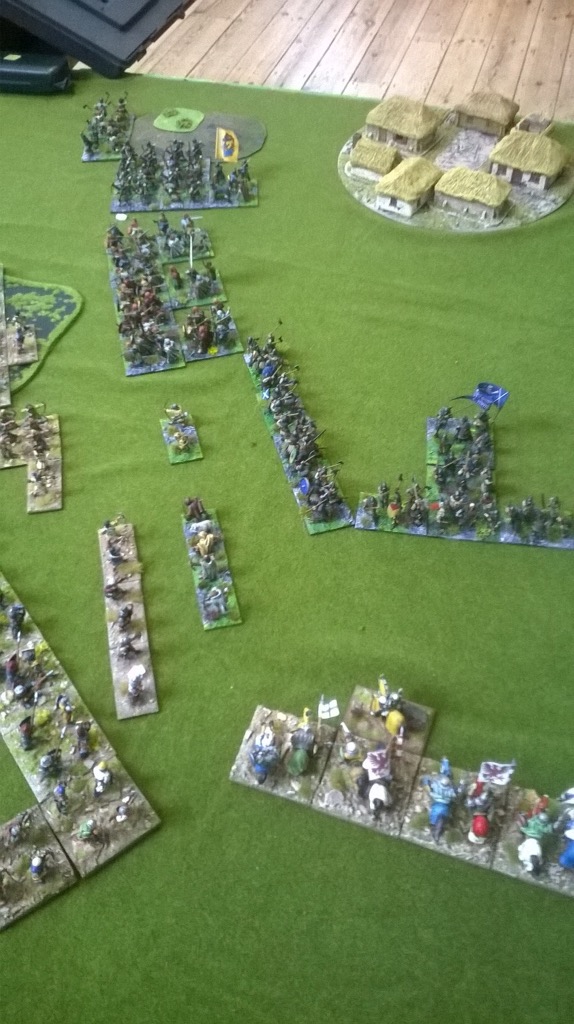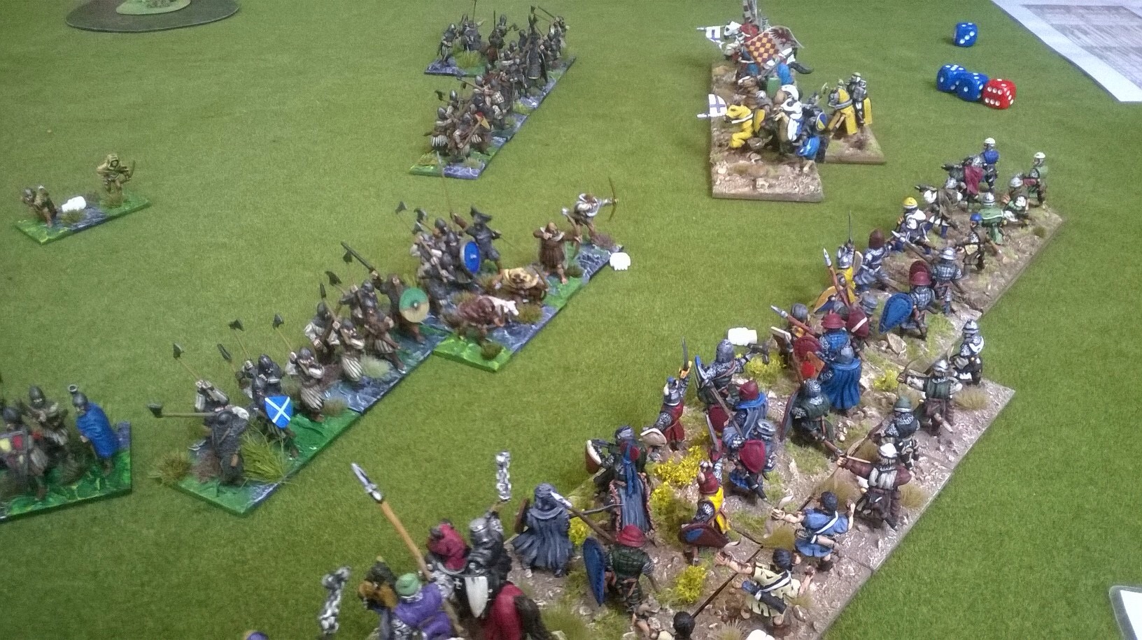 The Highlanders still came forward in the centre but the English foot were holding! To the North of the knightly host, a Mounted sergeant unit attacked the baggage and the battle was won!