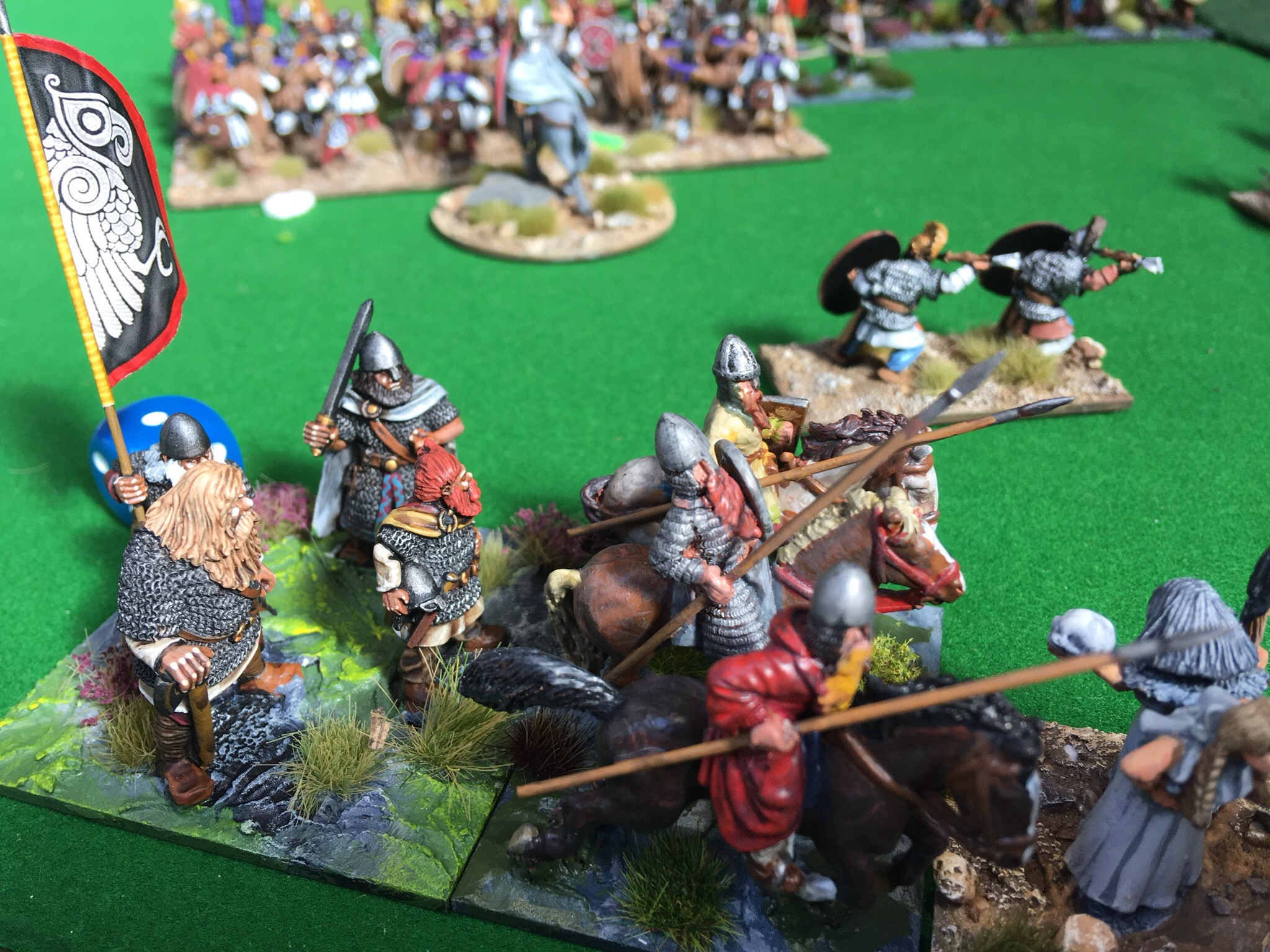 The evil genius was up to his old tricks. A village full of Viking axemen and two Brest implants on each flank of two handed Islesmen. I wasn’t going into the valley of death but his Vikings weren’t staying in the village. It were orrible……
