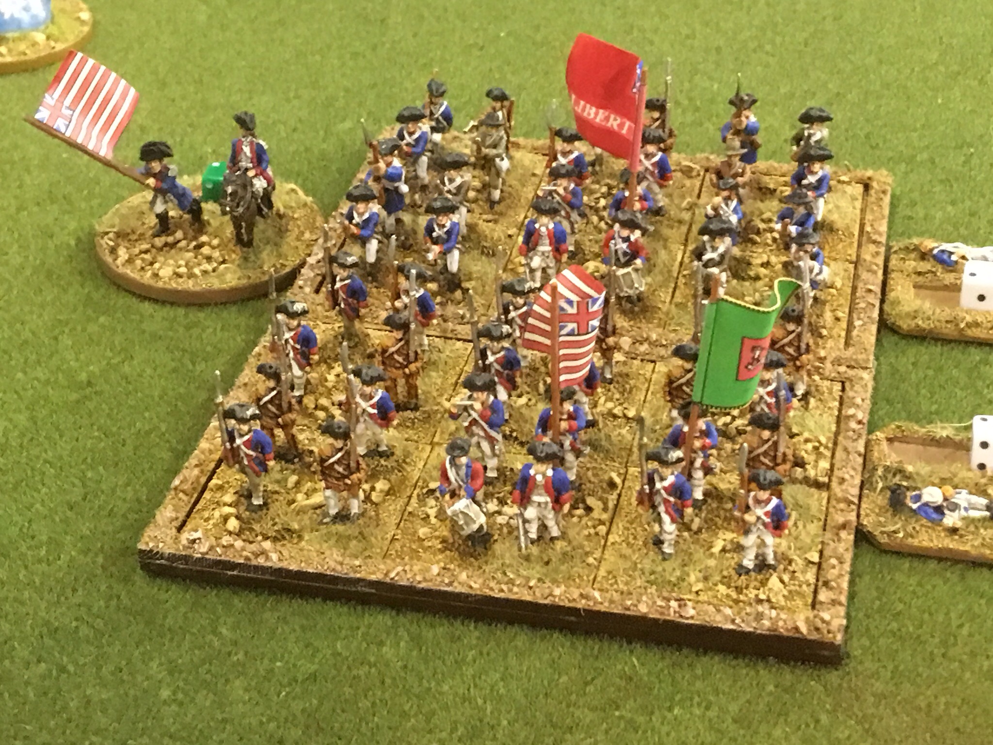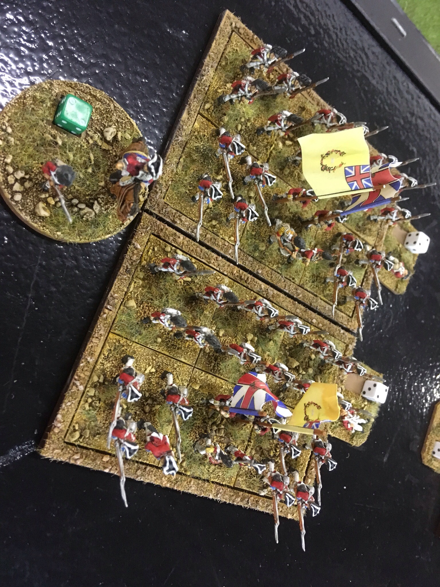 British pluck, and lucky dice won the day. The gallant Corporal Mogg rescued us from the farce of ignomonious defeat. The whole formation of American infantry was scattered. “More bad news” is a roll to lower force moral and the Americans were losing points. It was time to retreat to the cantonment before news of the British losses had to be admitted to in dispatches.