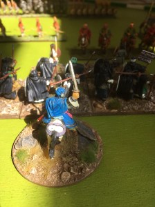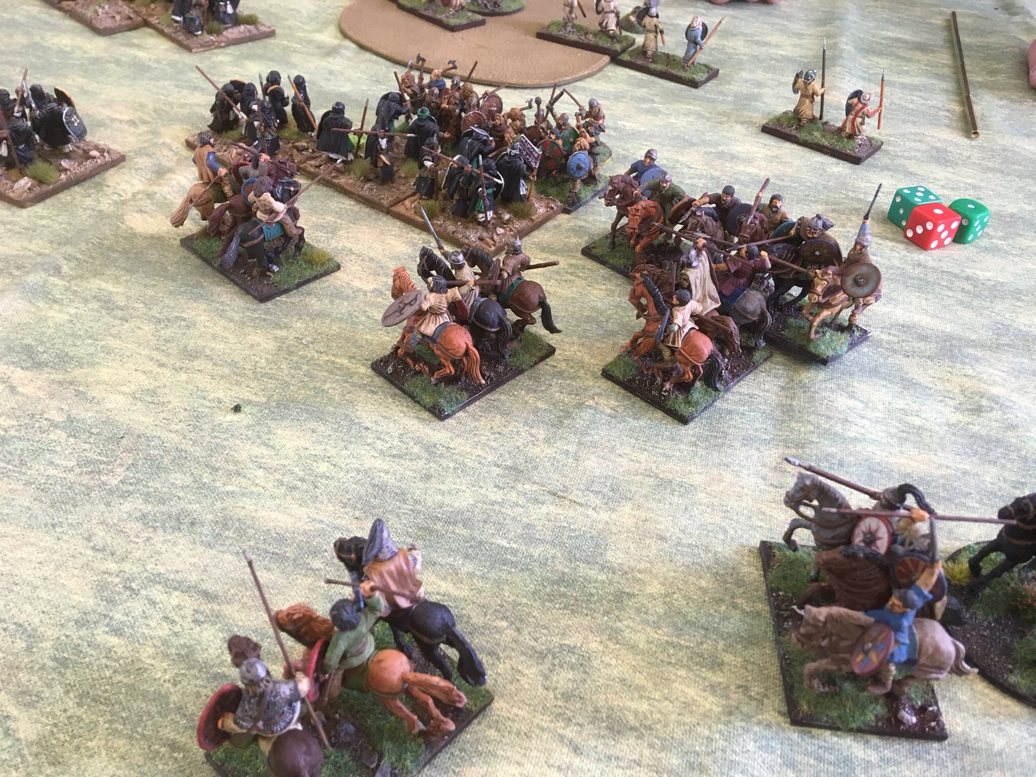 But, the Byzantines weren’t going to allow me anytime. By turn two, the enemy were across the table. The Byzantines were placing heavy reliance upon mixed units and that looked like a target.