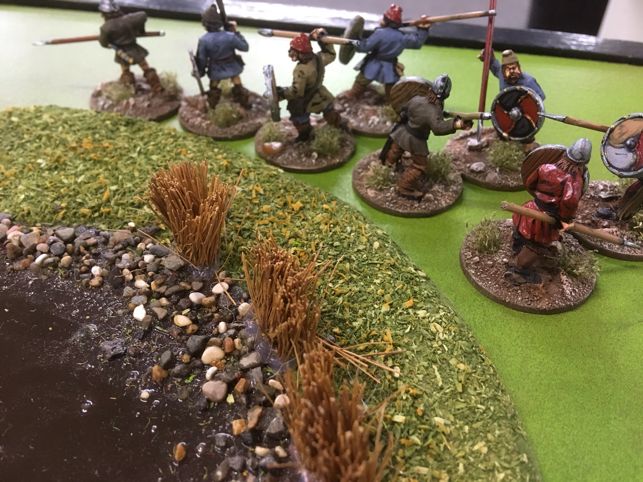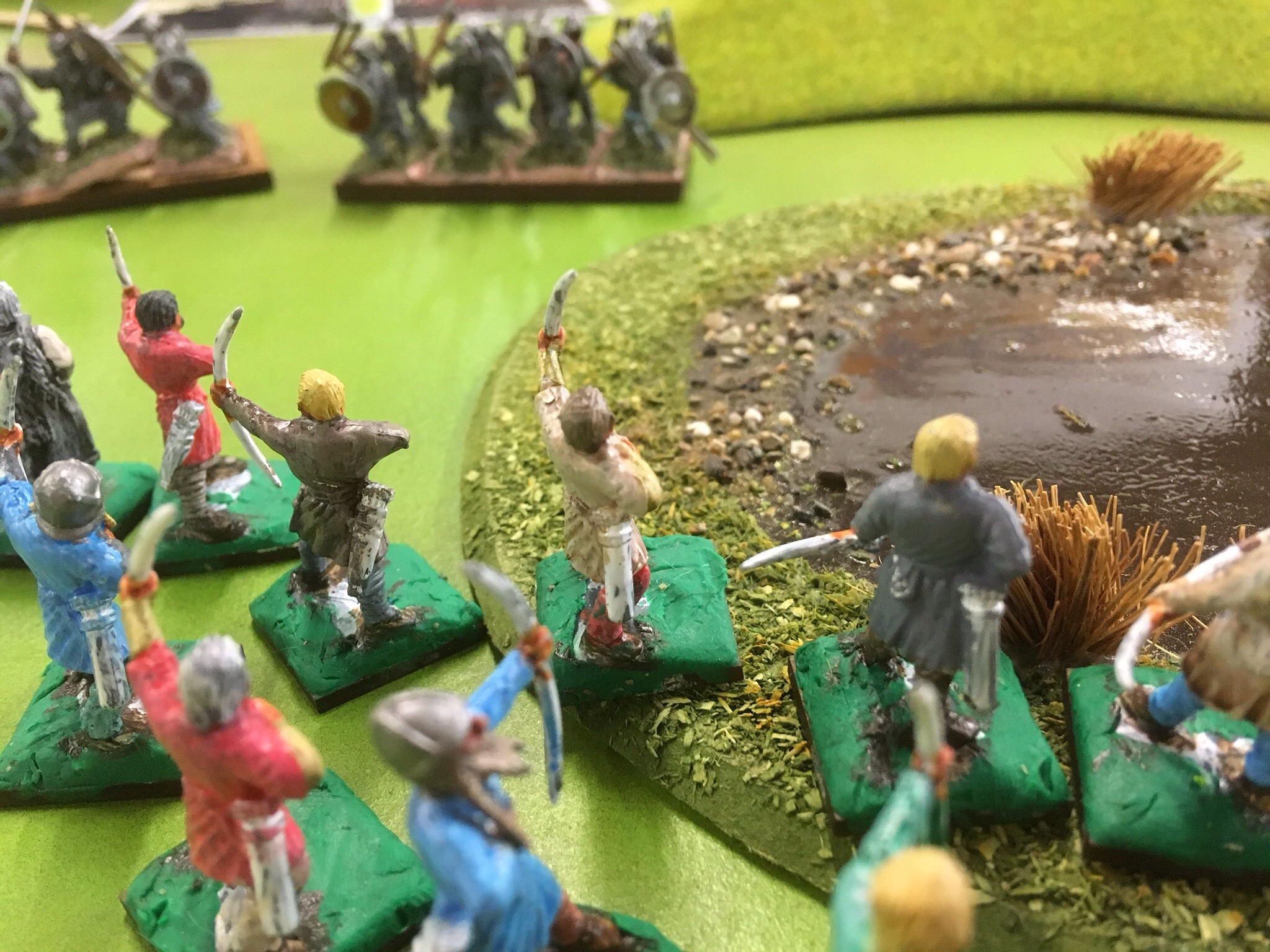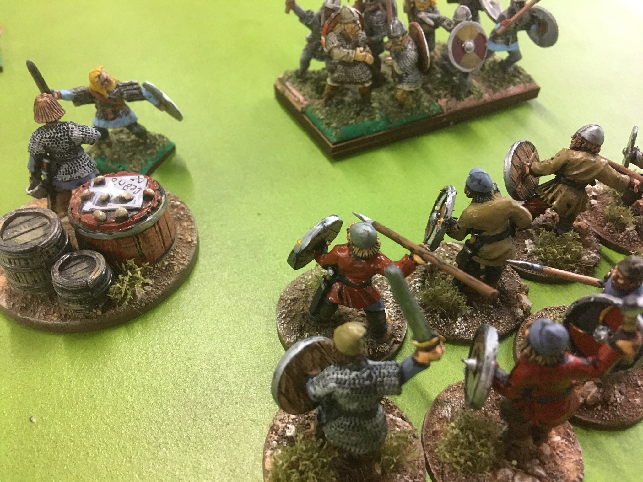 However, my great fyrd archers were made of sterner stuff. With a combination of reckless Viking sacrifices and great dice rolls, the Viking ” skateboard” sabot was looking very empty. Chris sacrificed the last three Vikings of this unit to bring down the Saxon hardmen.