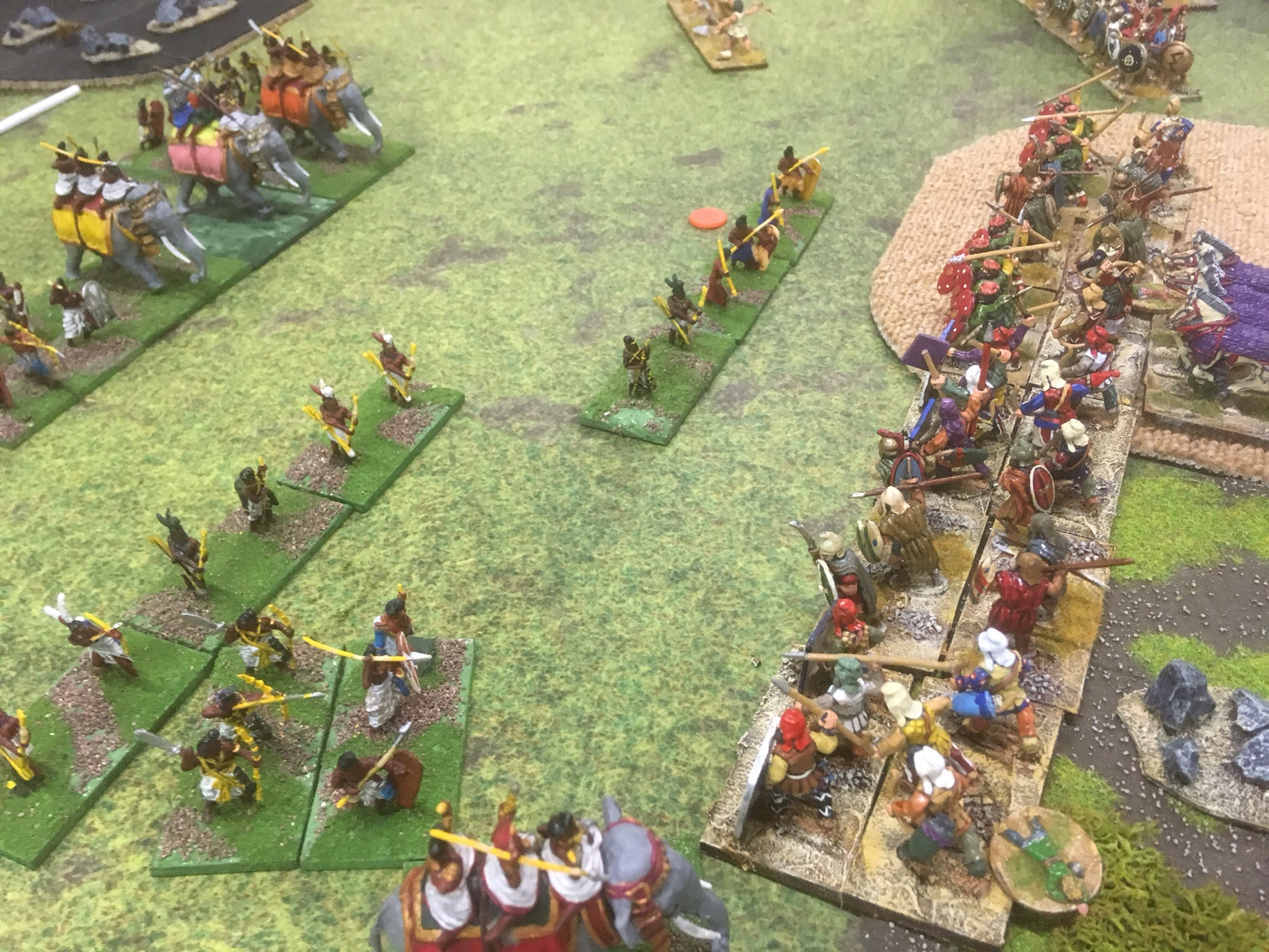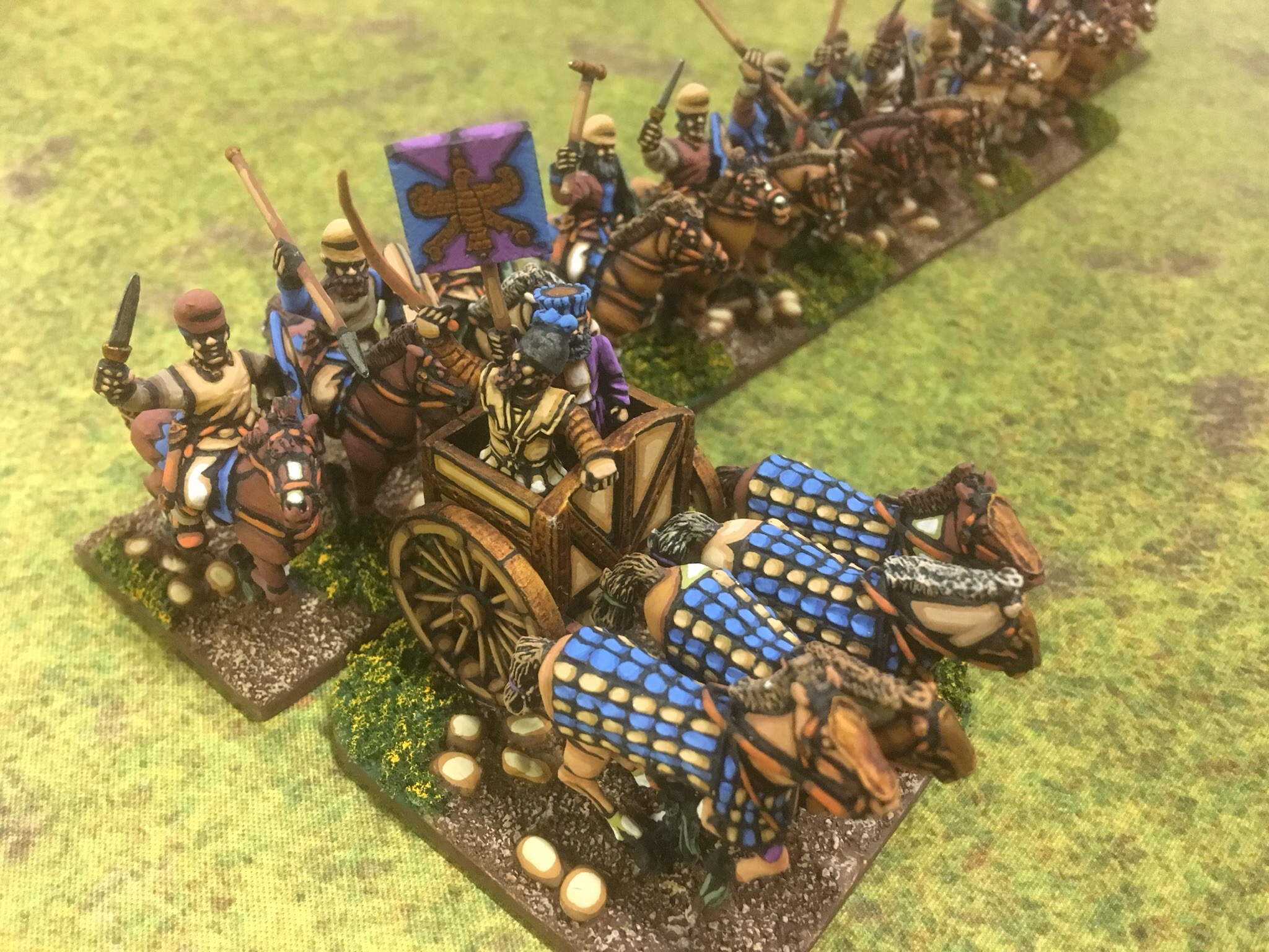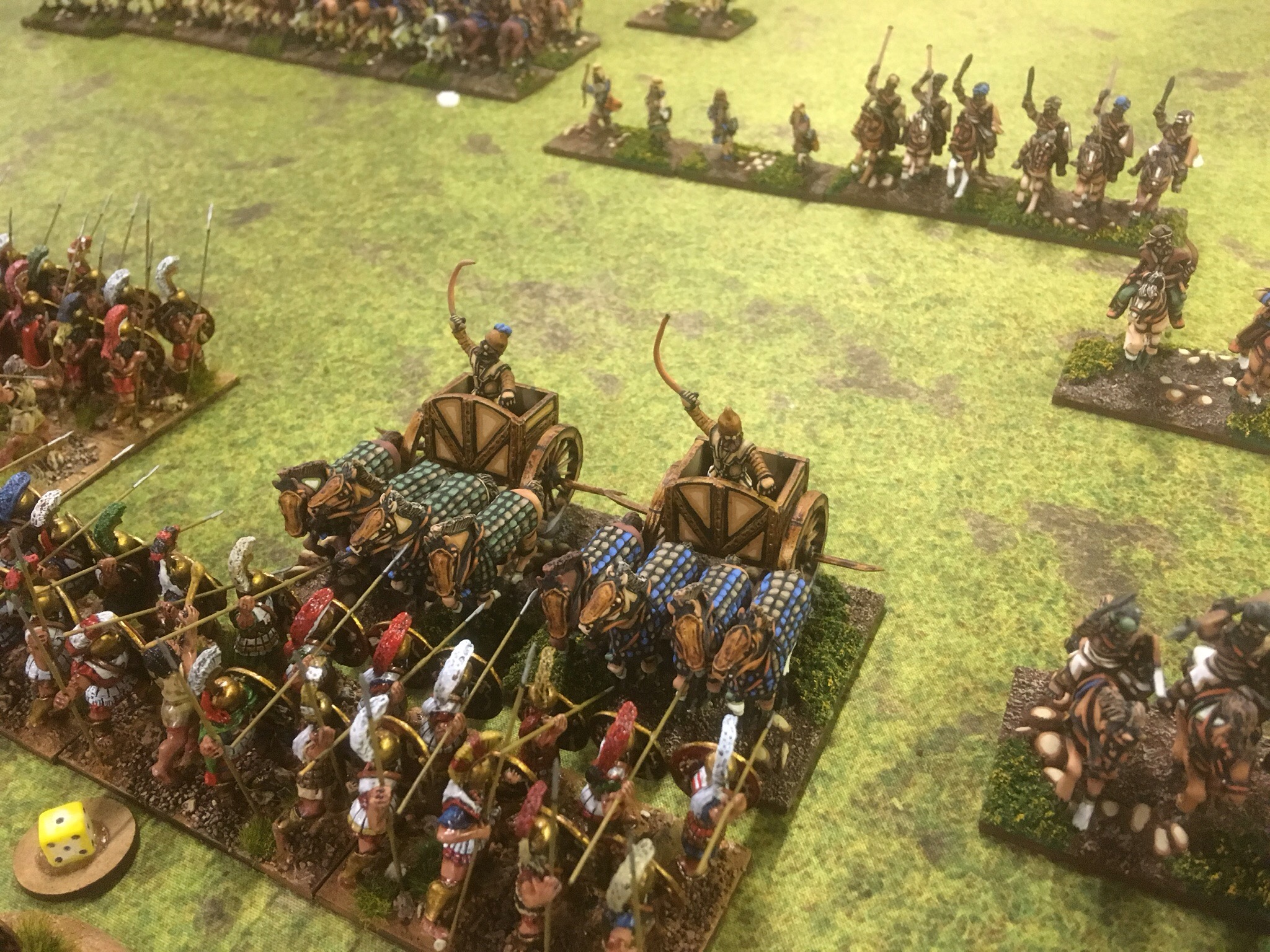 Of course a more subtle approach is to send a scythed chariot hurtling toward the neat lines of more conventional forces. Ian Speed and the mischievous Mark Fry both went for wheeled mayhem.