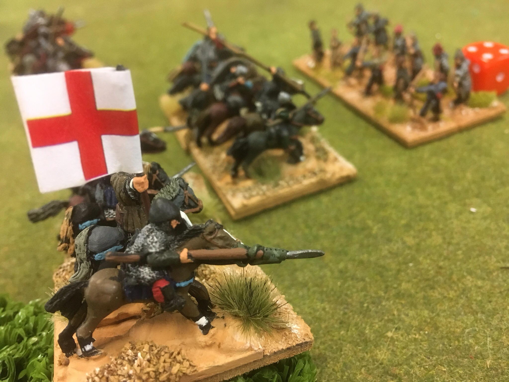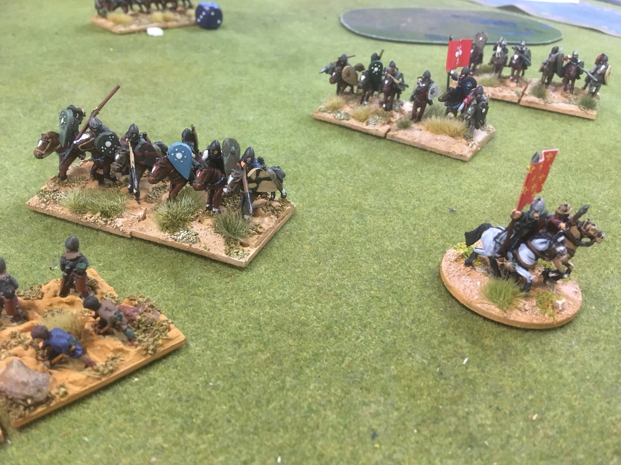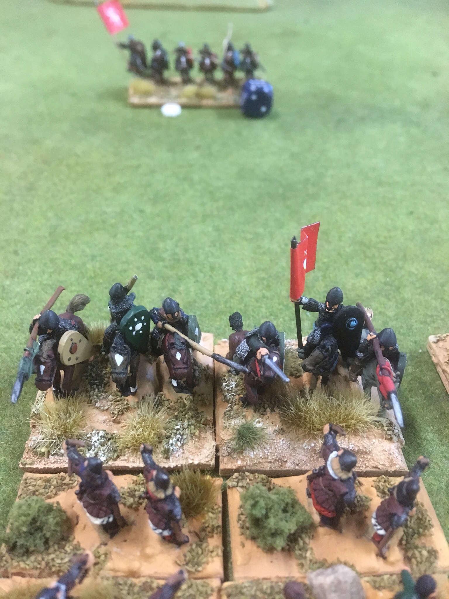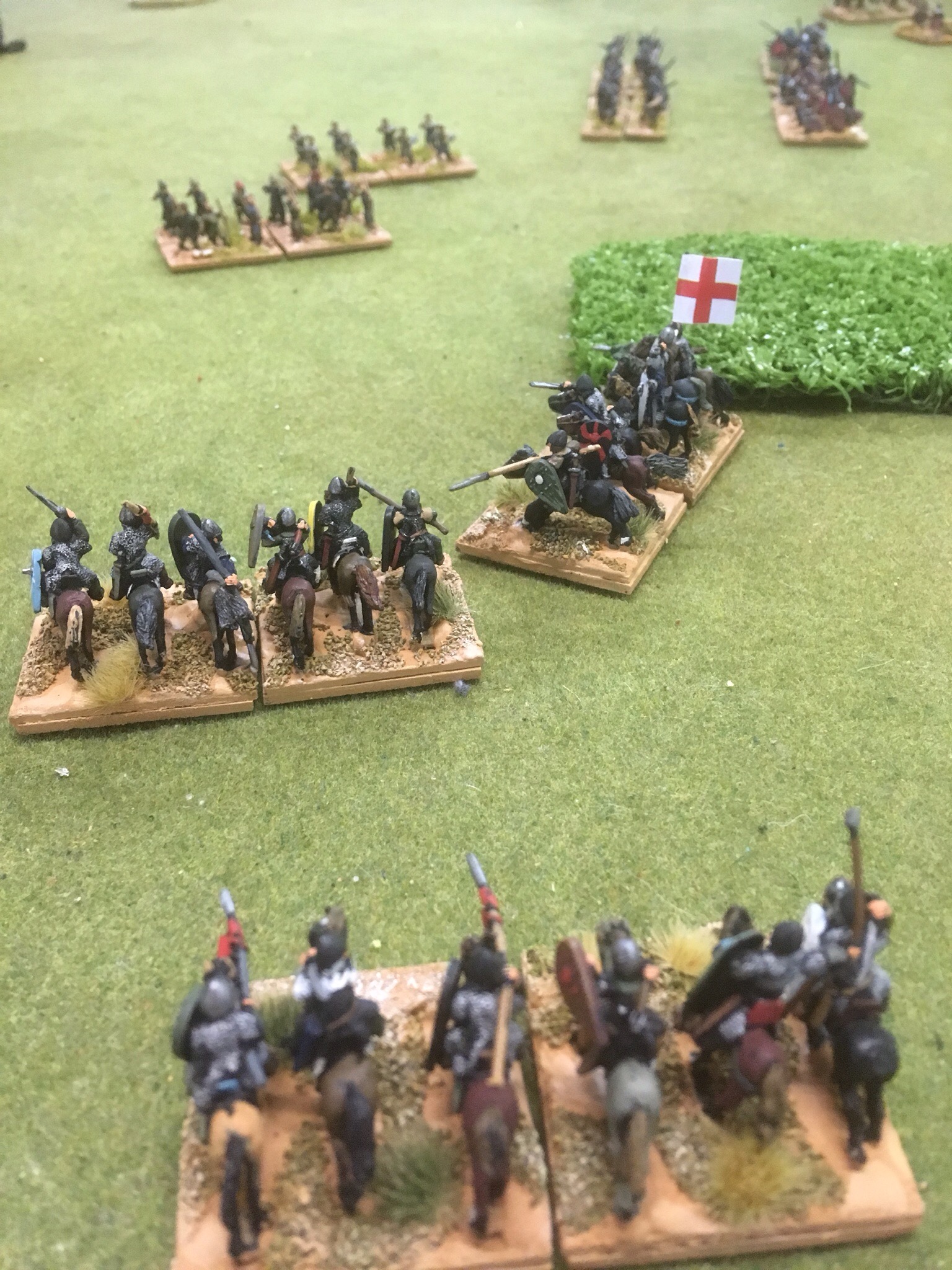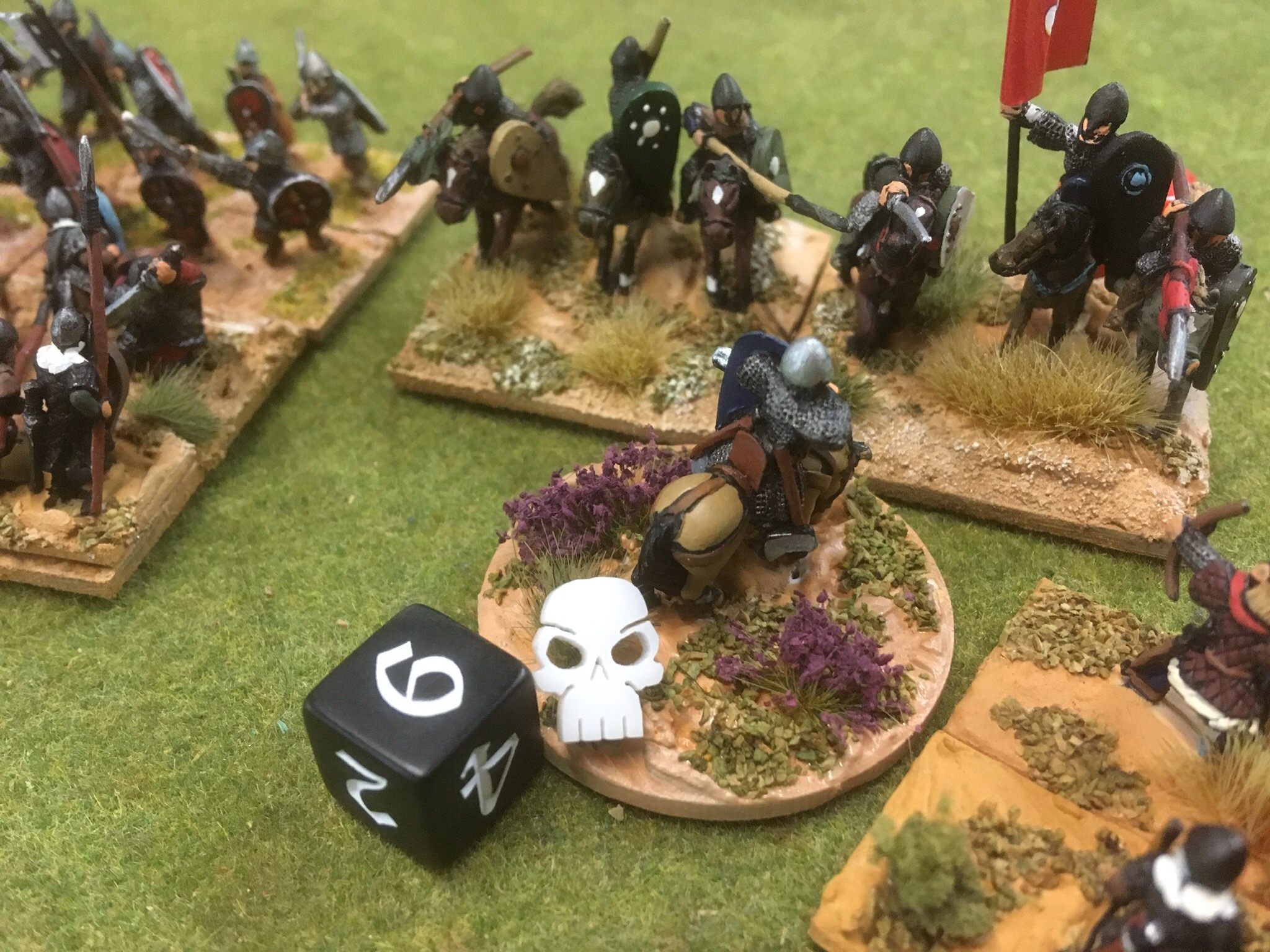 This is a deadly game. Nerve is determined by rolling two D6 and this added to the unit losses. If you roll high and have only a kite shield, then life is short. However, in this game, time is also short, usually ending after six or seven turns. Brother John is not usually so impetuous but this time, he was across the table, bad back or no……….