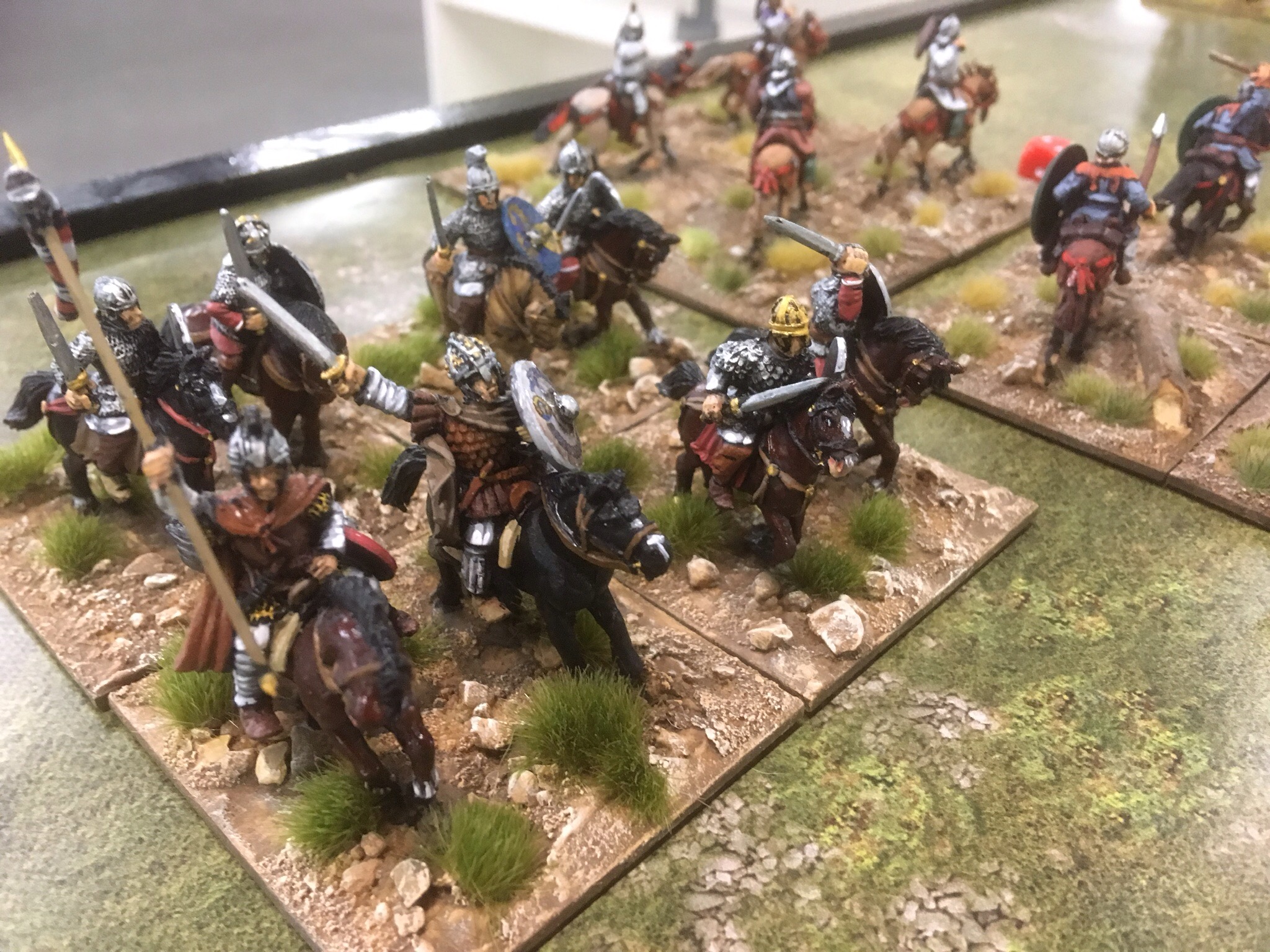 It was a much reduced force that hit the Greek flank. My cataphracts were worried about a Greek spear unit on their flank and my German federatii horse went in piecemeal. A chance for my legion to attack through the undergrowth was mistimed and Steve was able to see off the horsemen and then rout the remnant Legion.