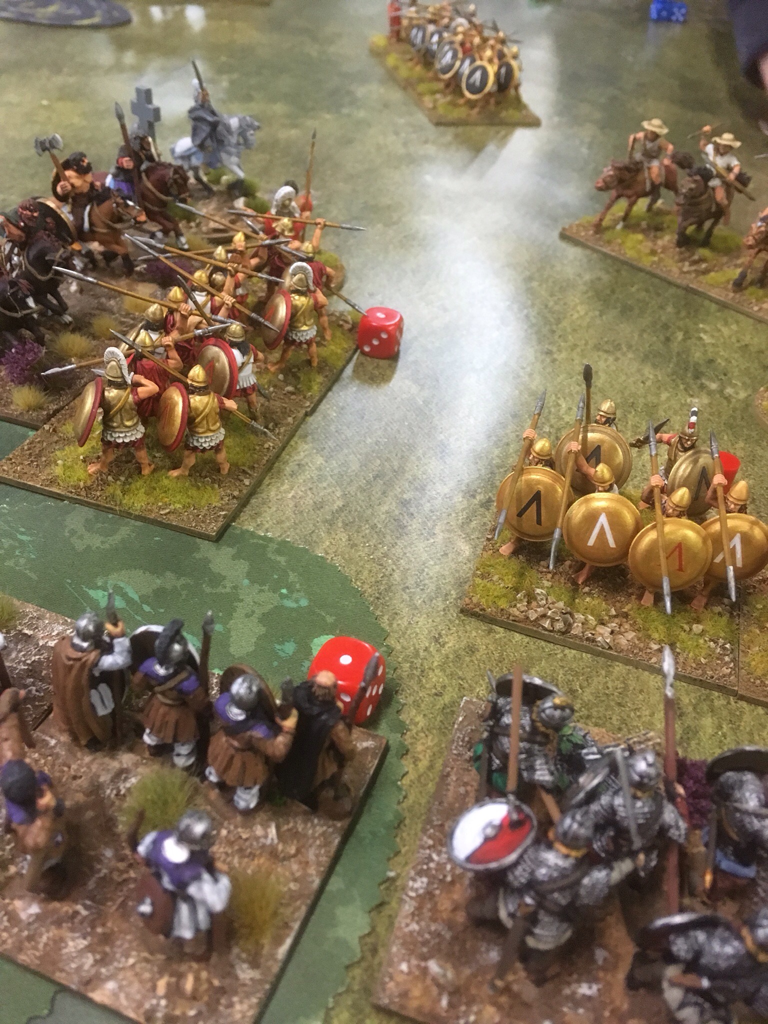 Never mind the divine light shinning down on the battle, the Greek Logos held his ground and brought down a flank charge that severely discomfited my Armoured kettlemen. It was over…..