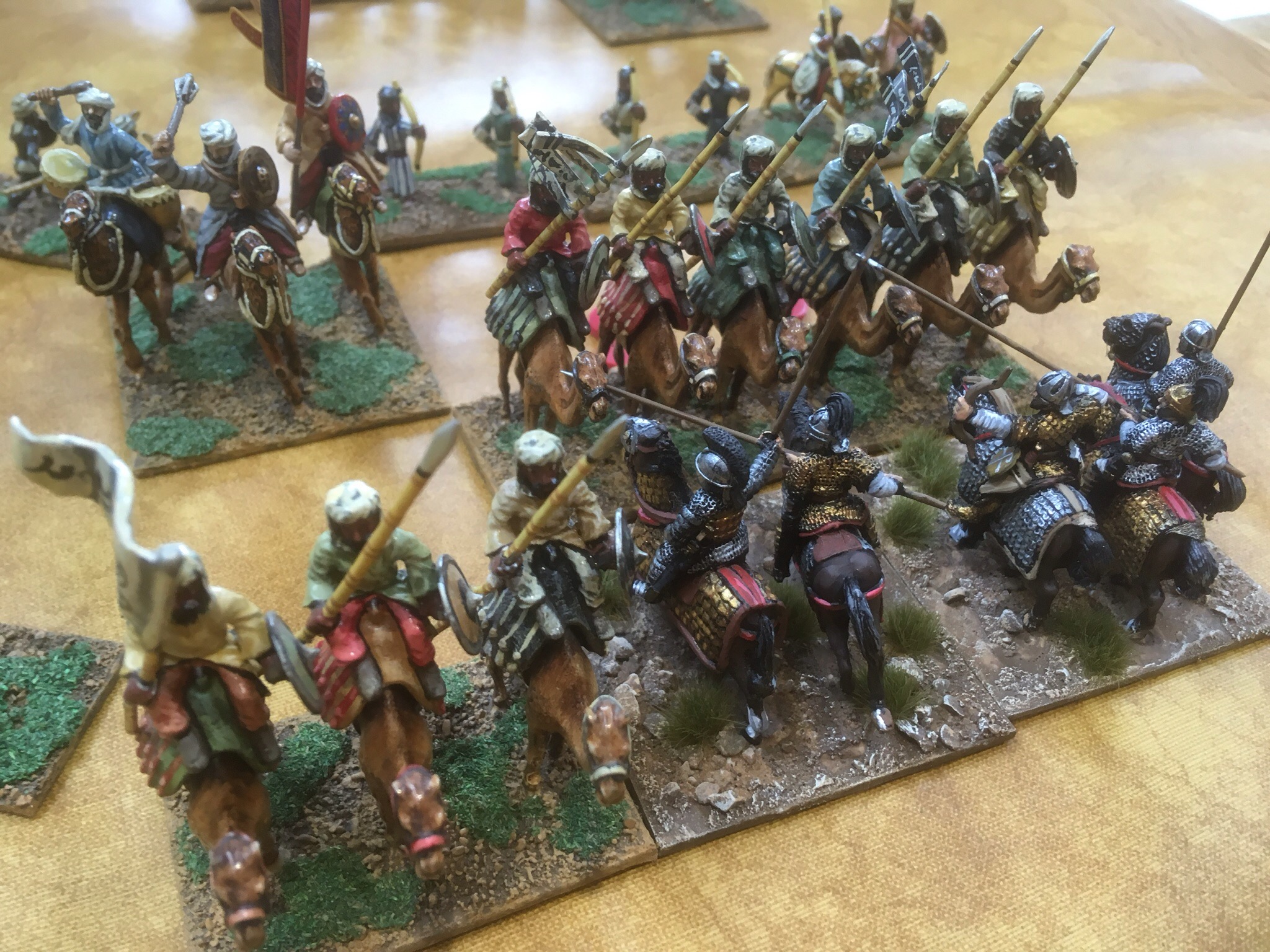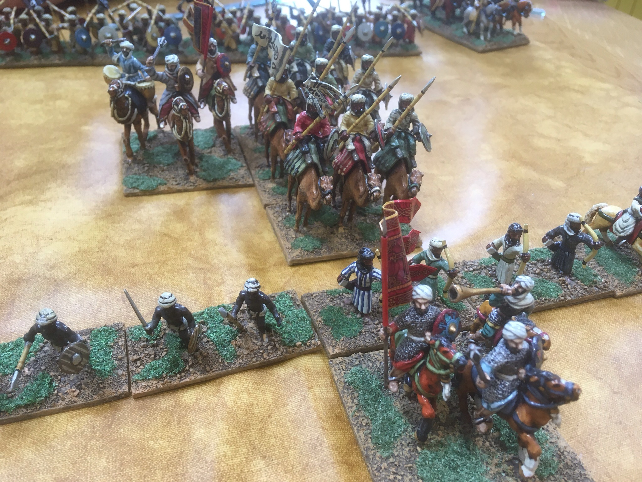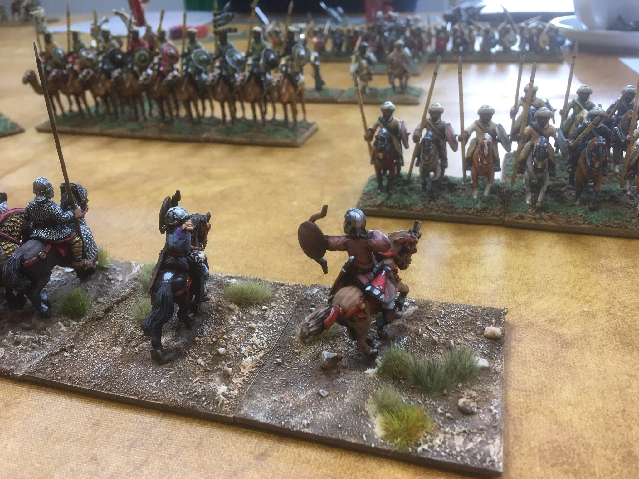 First shock of the day, the Don with his Early Arabs. This would be painful. He knows the rules inside out and is one of the few on the circuit who can talk more than me. I positioned my Franks in the centre, with skirmishers in the central plantation. Big mistake! Don had a secondary command of medium foot and the undergrowth would soon resonate to the soft tread of Arab sandals.